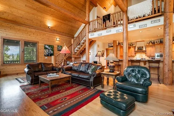 Welcome to your dream log home — a perfect blend of rustic charm and modern comfort nestled in a serene natural setting. This custom-built log retreat offers 4 bedrooms and 3.5 bathrooms across 3,876 square feet of warm, inviting living space. From the moment you step inside, you’ll be captivated by soaring cathedral ceilings, exposed log beams, and a floor-to-ceiling stone fireplace that anchors the great room. The open-concept kitchen features granite countertops, custom cabinetry, and custom appliances — ideal for hosting family and friends. Unwind on the expansive wraparound deck with breathtaking views of gorgeous trees and big mountain views, or enjoy quiet evenings in the great room or secondary family room.
