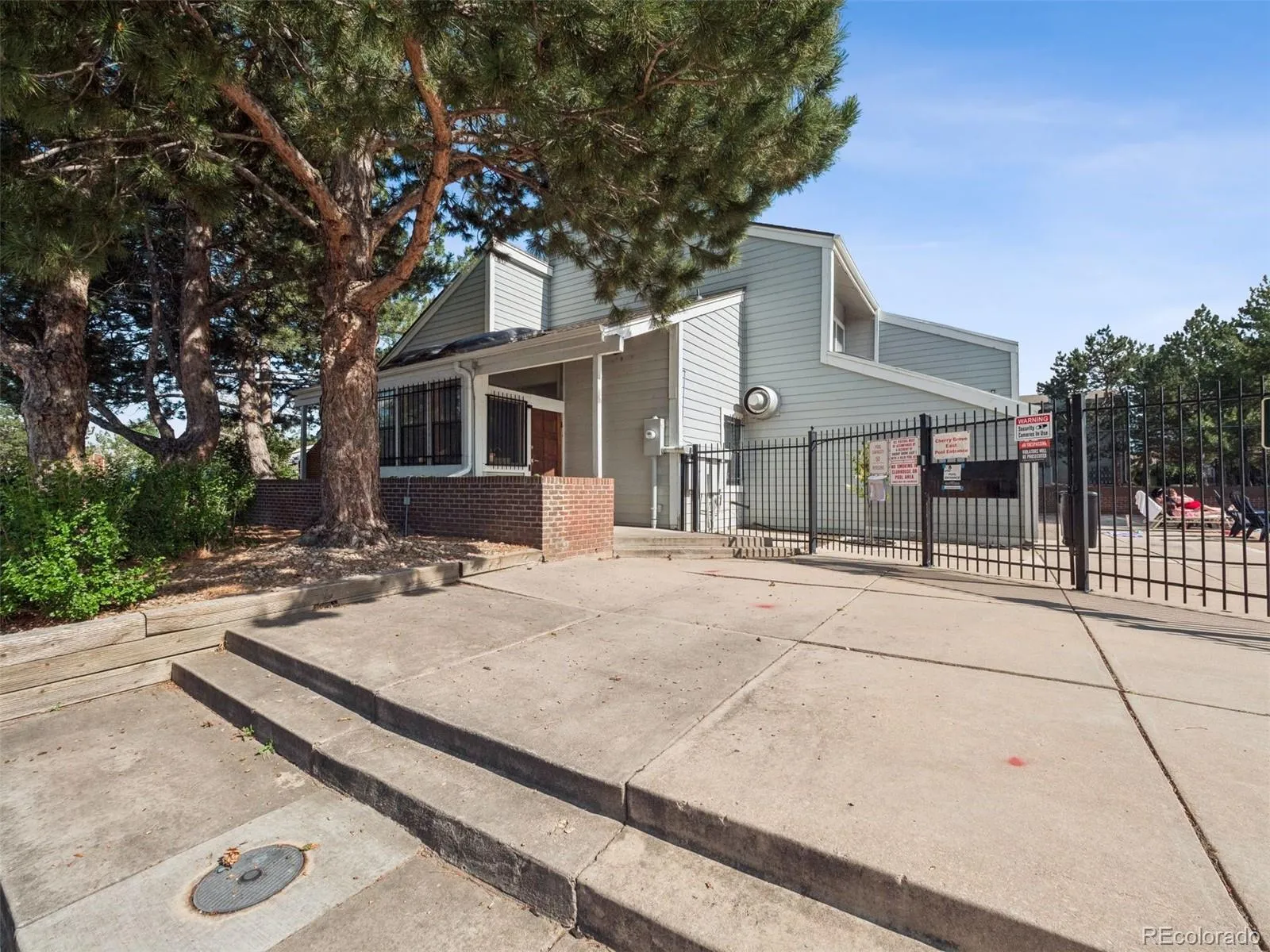 Open and airy top-floor living in Cherry Grove East! This penthouse-style condo offers a spacious, inviting feel with vaulted ceilings, a skylight, and a cozy wood-burning fireplace. The family room flows effortlessly to a private covered deck through large glass sliders, creating the perfect setup for indoor/outdoor living. Just off the main living area is a versatile bonus space currently used as a home office and library, easily adaptable as a dining area, workout zone, or creative nook. The kitchen is both stylish and functional, featuring stainless steel appliances, white cabinetry, and durable LVT flooring. The generously sized bedroom includes a large closet and private access to the deck. The bathroom has a smart layout with a separate vanity area, and the full-sized washer and dryer (included in sale) are conveniently located in a spacious laundry room with excellent storage. An additional outdoor storage closet provides even more room for your gear. Residents enjoy a dog-friendly courtyard, two parking passes for parking lot, and access to a pool, clubhouse, and resurfaced tennis courts with pickleball. Additional community improvements completed or in the works include tree trimming, parking lot repairs, staircase engineering and inspections, retaining wall replacements, tennis court redesign, patio fence repairs, lighting upgrades, and backflow replacements. Ideally located near the Town Center at Aurora, Lowry, and a variety of dining and shopping options, with easy access to light rail, I-225, I-70, CU Anschutz Medical Campus, and DIA. This location has it all—comfort, convenience, and outstanding value.