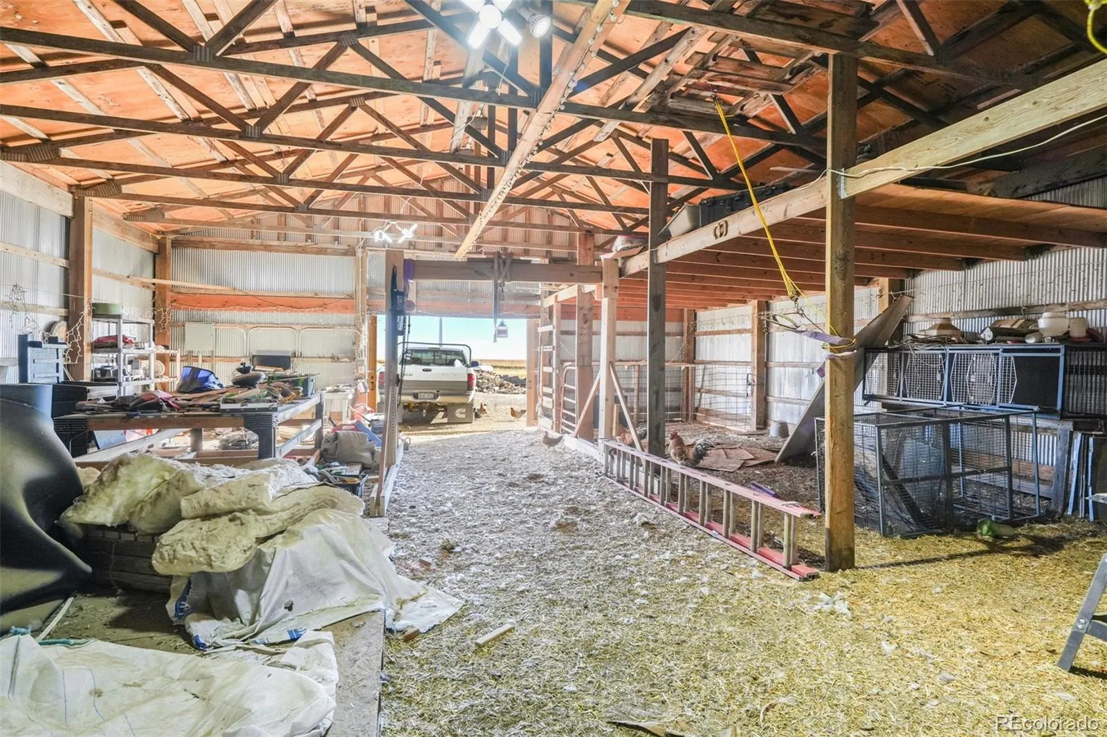 Concrete floors on the drive through detached garage and a barn for animals.