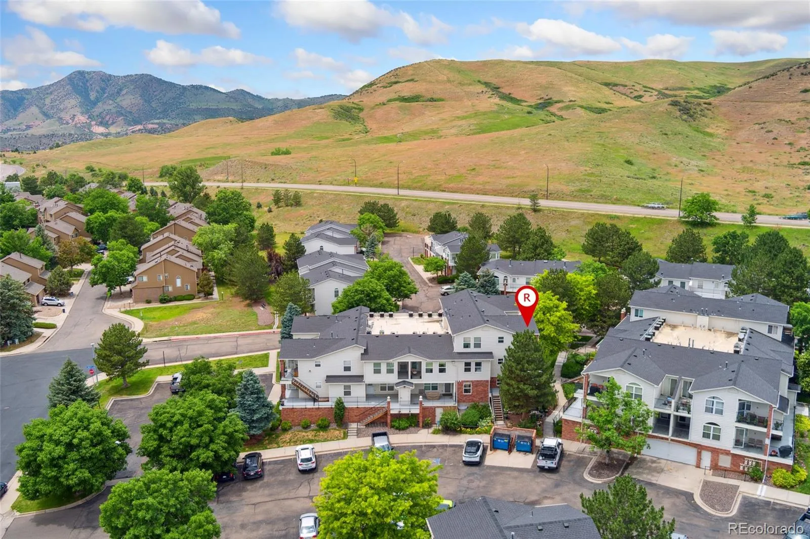 Incredible location at the base of the foothills with a beautiful view of Bear Creek Lake and immediate access to miles of hiking and biking trails across the street at Green Mountain Open Space. This move-in-ready 2 bedroom, 2 full bath condo offers two inviting outdoor spaces—one at the entrance and a private balcony off the primary bedroom. The home has been nicely updated with a brand new fridge, oven, and microwave, a newer dishwasher, freshly painted cabinets, and updated window coverings. The open kitchen and living area create a comfortable and functional living space. Just a short walk to the community pool, hot tub, and clubhouse—ideal for summer relaxation. Tucked in a quiet area with a strong sense of community and close proximity to excellent local businesses, shopping, and dining.