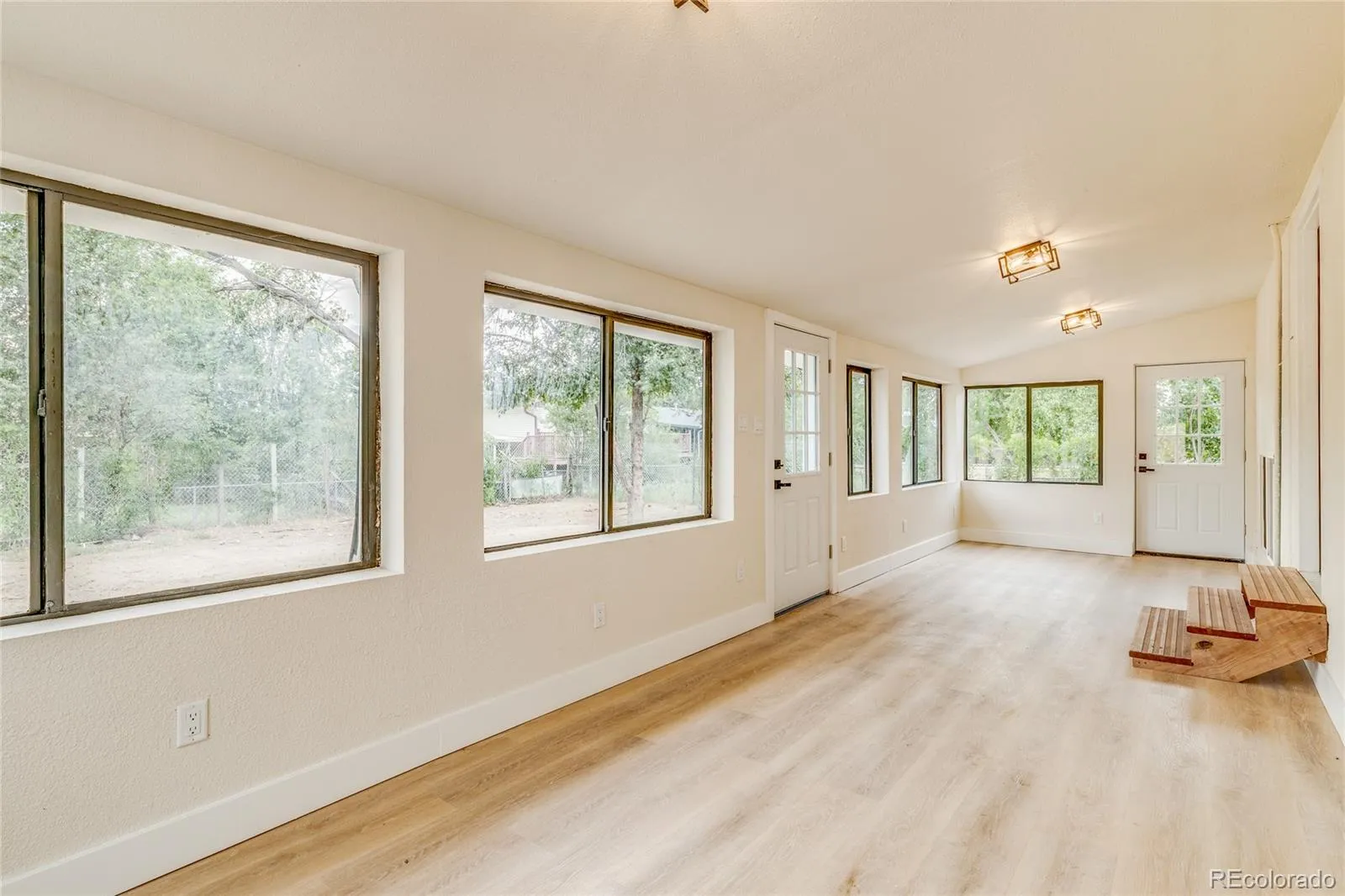 WELCOME HOME to This fully remodeled 4-bedroom, 2-bathroom home features a bright, open-concept layout designed for comfortable living. The spacious living area flows into a modern kitchen with updated countertops, stainless steel appliances, and ample cabinet space. A sunroom at the back of the home offers a light-filled retreat, perfect for relaxing, working from home, or hosting guests. All four bedrooms are generously sized with fresh flooring, updated finishes, and plenty of closet space. The two remodeled bathrooms are thoughtfully designed with clean, modern fixtures and tilework. Whether you need space for a home office, guest room, or hobby area, this layout offers flexibility to fit your lifestyle. Step outside to enjoy a large backyard ideal for gatherings, gardening, or simply taking in the mountain views. The landscaped front yard features a beautiful mature shade tree, adding charm and curb appeal. Ideally located near Fort Carson, shopping, schools, and scenic hiking trails, this home offers both comfort and convenience in a well-connected neighborhood