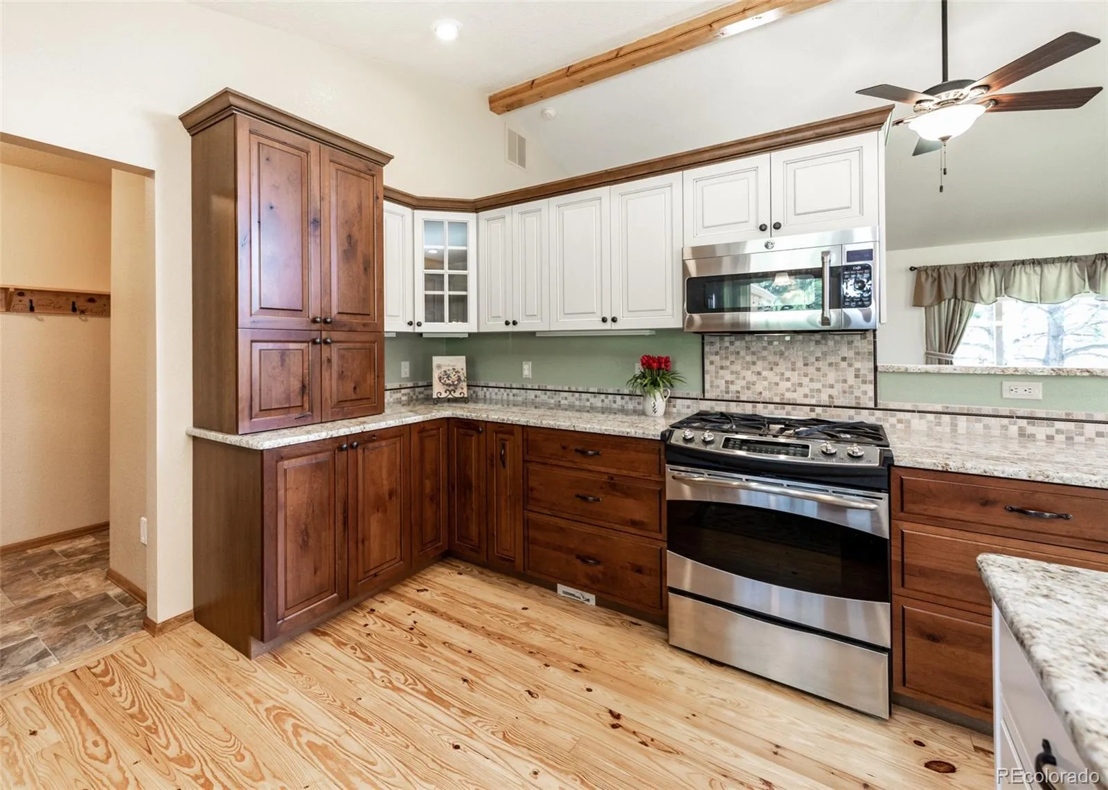 Can you feel your soul begin to relax when you approach this beautifully updated 2-acre retreat? The stunning views, and fresh mountain pine scented air greet you with open arms. Comfortable living and mountain retreat meet here. One level living is yours! Step inside to find a cozy yet spacious family room centered around a charming wood-burning stove, perfect for chilly mountain evenings. Tons of windows let in the Colorado sunshine. The dedicated dining room features warm knotted pine flooring and a walk-out to the patio area. The newer updated kitchen boasts dual-tone cabinetry with under-cabinet lighting, upgraded stainless steel appliances, granite countertops with artistic tile backsplash and a rustic vibe that blends style with function. The generous primary suite includes a large walk-in closet and ensuite bathroom with double vanities and a custom tiled walk-in shower. Two additional secondary bedrooms are bright and roomy, each offering ample closet space. The laundry area is thoughtfully designed with a stacked washer and dryer (included), a handy laundry sink, and built-in functionality. Enjoy morning coffee or evening sunsets on the covered front porch that faces lovely mountain vistas. The massive 1680 sq.ft. RV garage is designed to accommodate your RV, large vehicles, machinery, and all your toys! Your dream workshop awaits with ample cabinetry and countertop space. It even includes a “man cave” loft area ideal for relaxing with friends. Need space for guests, a home office, or crafting? The detached 192 sq. ft. guest/craft cottage features electricity, luxury vinyl plank flooring, cabinetry with butcherblock counters. Ready for whatever you can dream. Newer A/C, central vac, newer Anderson windows, newer water heater and furnace means the main systems are updated and will last many years.Close to Cripple Creek, skiing and Eleven Mile Reservoir. Gorgeous rock formations, breathtaking mountain views, and room to roam make this home a truly rare find.