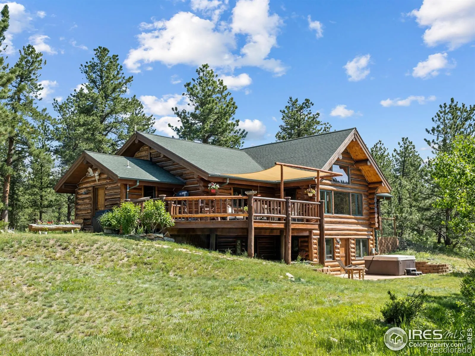 The luxury, sanctuary retreat you’ve been looking for is now on the market. You’ll discover an extremely rare, one of a kind Rocky Mountain property complete with a gorgeous, full 12″ log home built by Legacy Log Homes. Perfectly situated on 22+ very private acres of lush meadow, aspen grove, and evergreens with a seasonal creek running through, creating natural habitat for prolific wildflowers and ample opportunity to view the native wildlife. The main level of the home has vaulted beamed ceilings, wood floors, plentiful windows throughout, a gourmet kitchen with generous granite counters and breakfast bar, tile flooring, stainless appliances, custom lighting and so much more. The lower level opens to a patio where you can relax and soak in complete privacy of your own hot tub, while enjoying the views of meadow full of wildflowers and lined with aspen. In addition to the log home, the property includes an A-frame that’s been decommissioned and is used as a work shop, together with an additional out-building for storage. Only minutes away from the Wild Basin entrance to Rocky Mountain National Park, Indian Peaks Wilderness, and Roosevelt National Forest. You can experience all the outdoor activities the Rockies offer as well as festivals, shopping and dining in the surrounding areas that include downtown Lyons, Estes Park, Allenspark, Jamestown and within an hour of Lake Eldora (Eldora Mountain) ski area. This sanctuary property is easily accessed by a well maintained private road. Don’t miss this one!