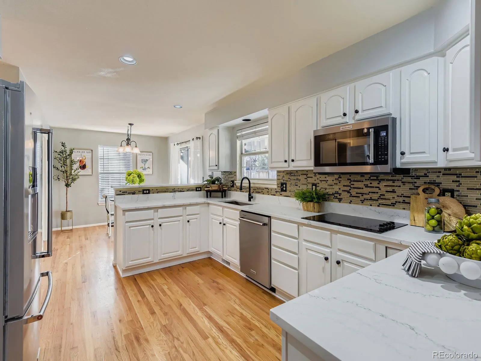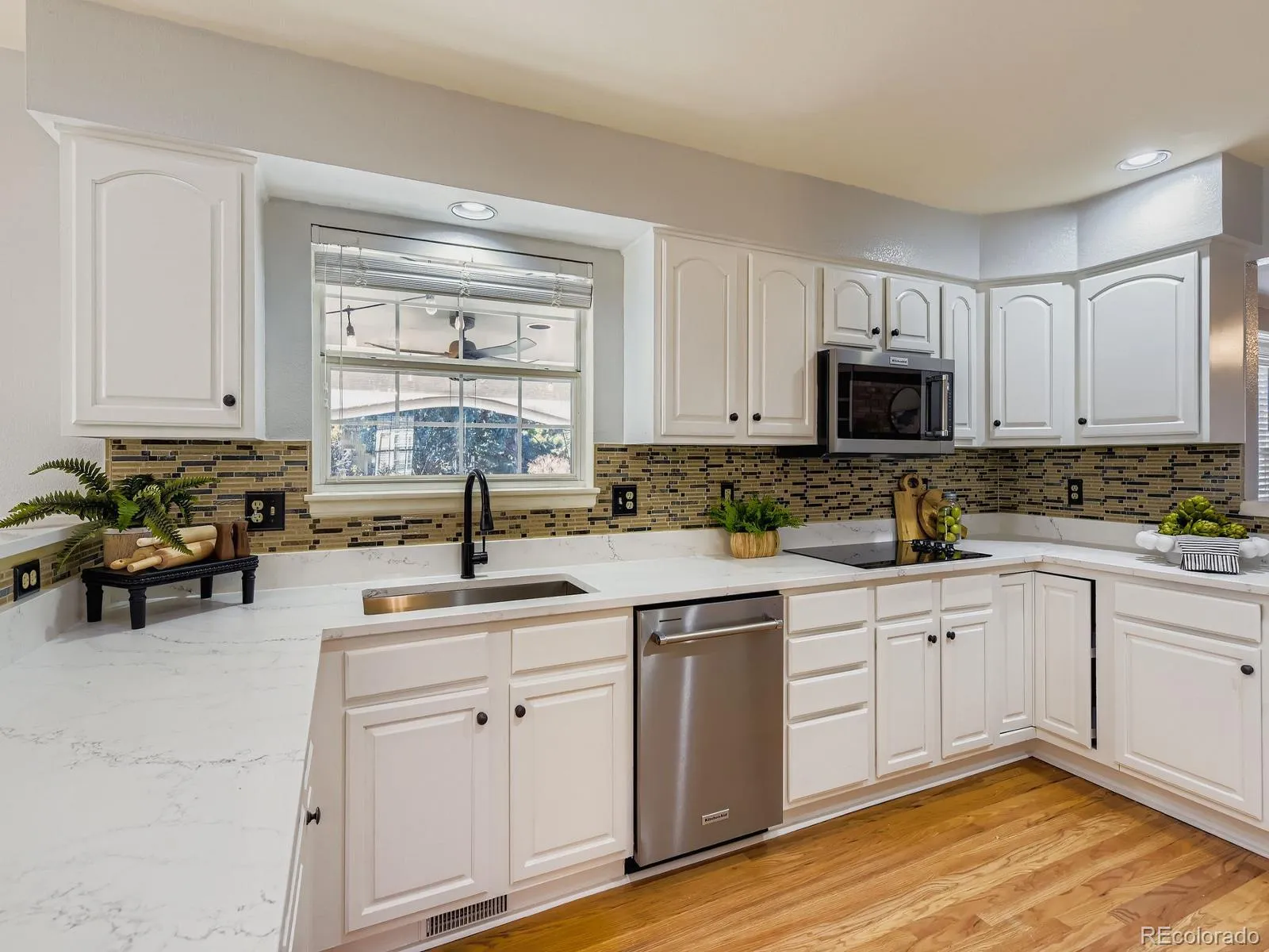 Picture stepping into effortless Highlands Ranch elegance. Four beds four baths, east facing, 4,000 Sq Ft that feels bigger the moment gleaming hardwood floors greet you. Just updated Kitchen and bathrooms featuring Quartz countertops throughout, gleaming under new light fixtures. Leisurely stroll past the double sided fireplace that talks to both rooms. Big office with custom steels doors. New faucets, showers, and bathtub hardware throughout. Stainless Steel Appliances. A/C new as of 2024 ready for next summers heat wave. New hot water heater installed Nov 2025! House exterior painted in 2022. The primary bedroom has a 5 pc spa bath and walk-in closet. Finished basement pre-wired for surround sound, and a large storage room with built in shelving. A finished 3 car garage, painted, custom lighting, ceiling storage, wall shelving, custom slat wall panels for storing tools. Garage fridge, water spigot with cold and hot water. The backyard has a large covered patio with ceiling fans that sits under mature trees overlooking a large well manicured lawn. Smart home features: WI-FI sprinkler system, thermostat, video door bell and security light/camera above garage. Great neighborhood, great neighbors. An excellent elementary school a few steps down the street. All amenities Highlands Ranch is known for, 4 recreation centers including gyms, Parks galore, and just minutes from highways and shopping.