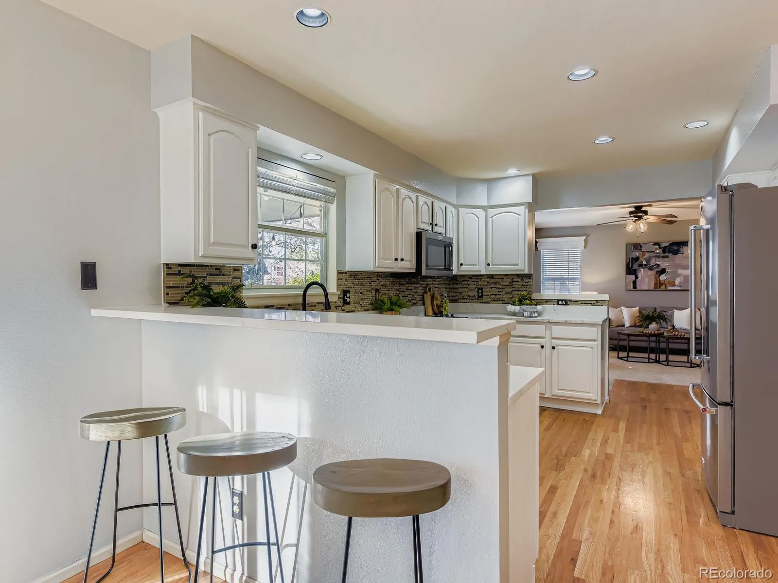 Picture stepping into effortless Highlands Ranch elegance. Four beds four baths, east facing, 4,000 Sq Ft that feels bigger the moment gleaming hardwood floors greet you. Recently updated Kitchen and bathrooms featuring Quartz countertops throughout, gleaming under new light fixtures. Leisurely stroll past the double sided fireplace that opens to both rooms. Big office with custom doors. New faucets, showers, and bathtub hardware throughout. Stainless Steel Appliances. A/C new as of 2024 ready for next summers heat wave. New hot water heater installed Nov 2025! The exterior of the Home painted in 2022. The primary bedroom has a 5 pc spa bath and walk-in closet. Finished basement pre-wired for surround sound, and a large storage room with built in shelving. A finished 3 car garage, painted, custom lighting, ceiling storage, wall shelving, and custom slat wall panels for storing tools. Garage fridge, and sink features both cold and hot water. The backyard has a large covered patio with ceiling fans that sits under mature trees overlooking a large well manicured lawn. Smart home features: WI-FI sprinkler system, thermostat, video door bell and security light/camera above garage. Great neighborhood, and great neighbors. An excellent elementary school within walking distance down the street. All amenities Highlands Ranch is known for, 4 recreation centers including gyms, Parks galore, and just minutes from highways and shopping.