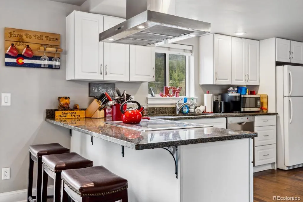 Fully furnished cabin with wrap-around deck on 1.06 wooded acres along Monte Cristo Creek—just 6 miles south of Breckenridge. Freshly painted exterior trim, brand-new six-person hot tub, and a kitchen refresh with a new stove and whisper-quiet dishwasher. Three generous bedrooms and two baths frame a vaulted great room anchored by a classic wood-burning fireplace. Radiant in-floor heat, an attached two-car garage with storage – make mountain living effortless. Level driveway, no HOA, and ready for your immediate enjoyment or revenue stream. Waitlist is coming soon for Upper Blue STR licenses.