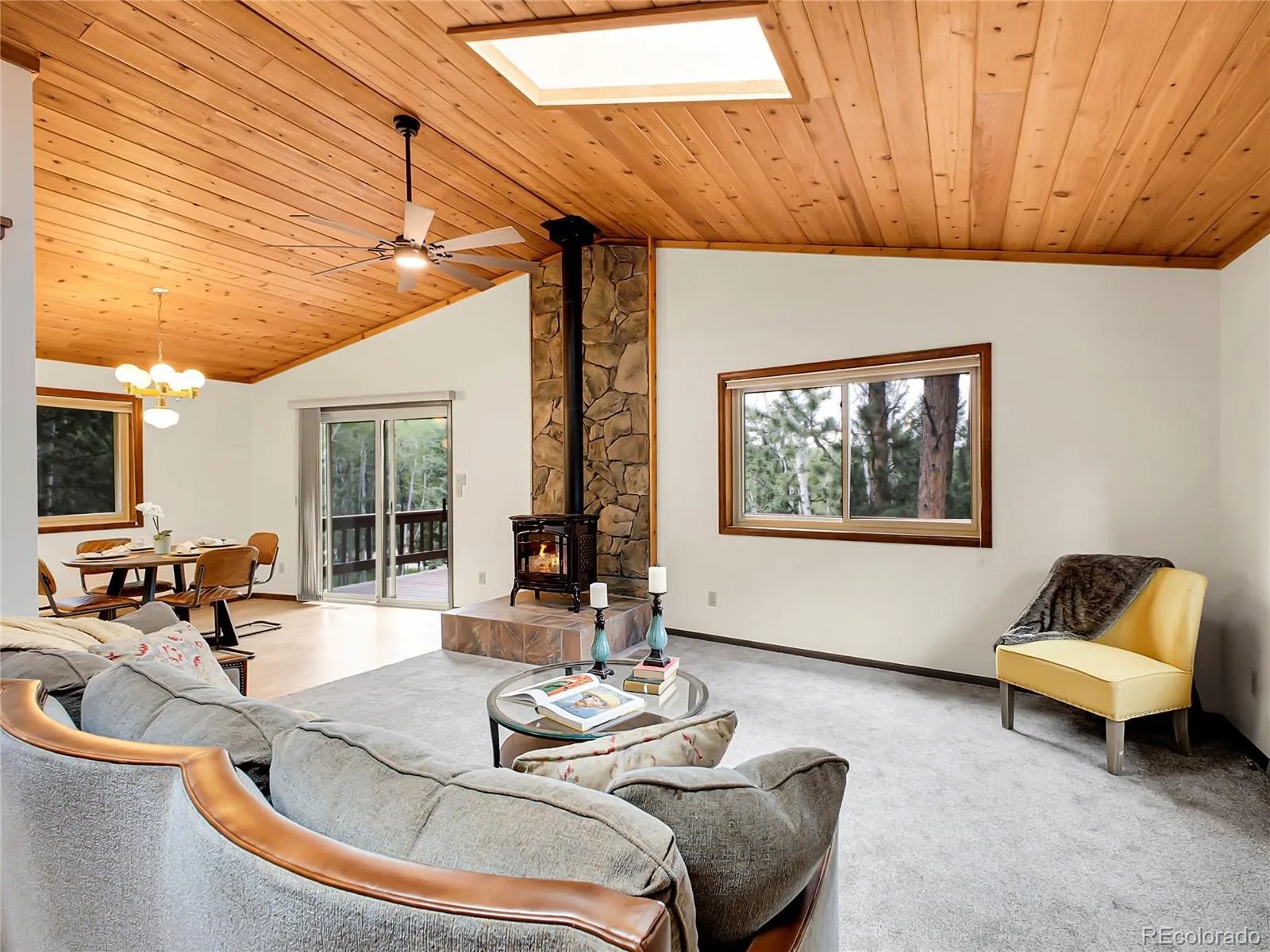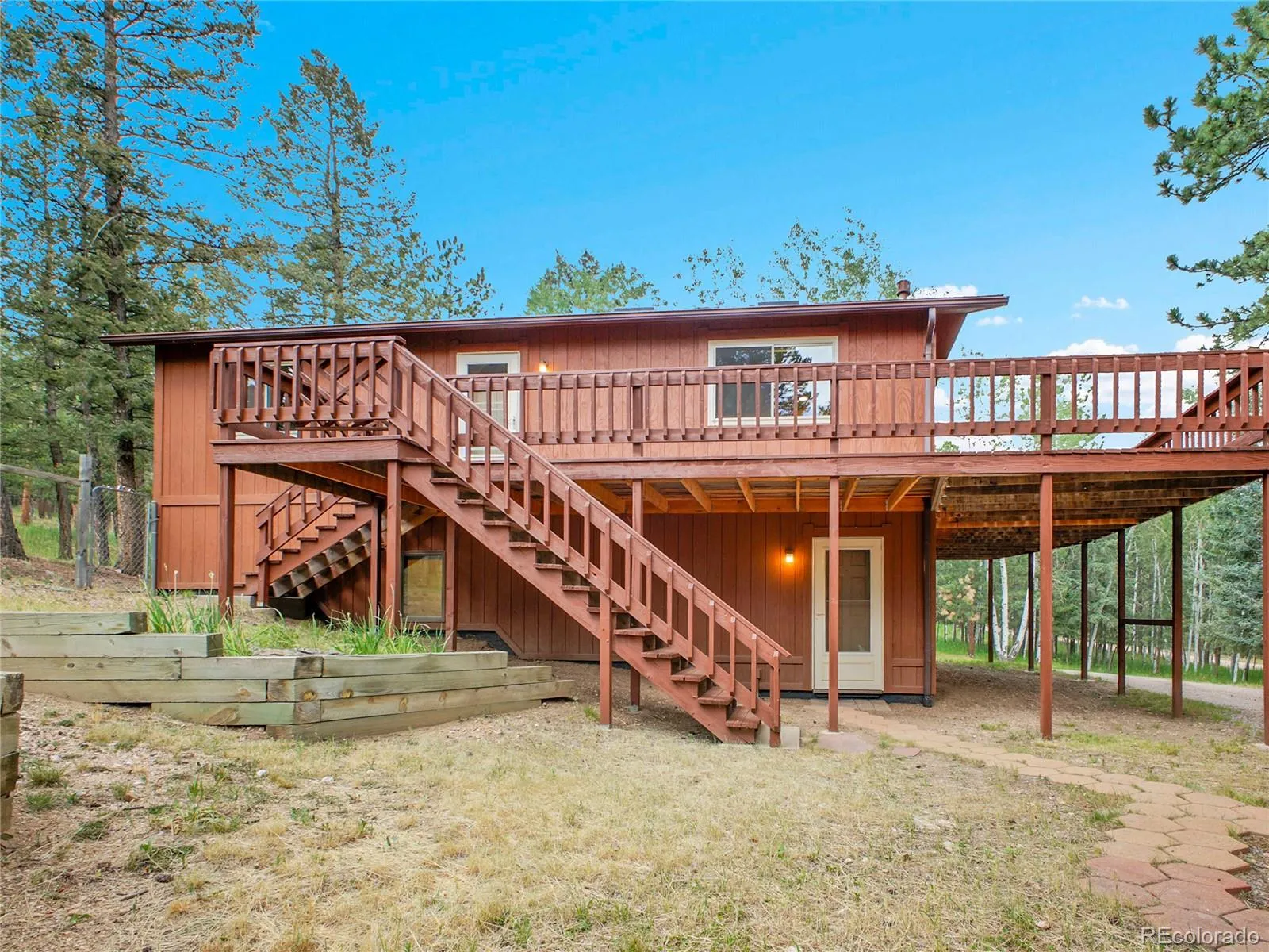 Welcome home! Enjoy peaceful living on a private acre. This property is move-in ready with modern updates. Discover the perfect blend of comfort, privacy, and space in this beautifully updated home. This 4 bedroom (the 4th bedroom is non-conforming due to no window but could also be used as an office or craft area. You decide!) 2 bathroom home is nestled on a gently sloped acre of land surrounded by mature trees and open sky. Whether you’re seeking a quiet retreat, a place to garden or room to roam with loved ones and pets, this property delivers a relaxed, rural lifestyle. There is a park and playground at the end of the road for community get-togethers or impromptu picnics. The town of Bailey offers restaurants, a winery, a brewery, and unique shops for your enjoyment. Grocery stores are located in the nearby town of Conifer. Step inside to fresh new carpet, LVP waterproof flooring and durable ceramic tile that reflect pride of ownership throughout. The home has been meticulously maintained and thoughtfully improved. All the expensive replacements have been done. It offers peace of mind with a new septic tank (2024). The septic system is rated for 3 bedrooms/6 people. A new Class 4 architectural shingle roof (2024), is ideal for weather protection and potential insurance discounts. The home, deck and garage were re-stained last in 2024 Heating primarily relies on a forced air furnace, a natural gas furnace, a freestanding gas stove and electric baseboard heating as a backup. Enjoy morning coffee or evening sunsets from the freshly stained exterior and decks, perfect for relaxing or entertaining a crowd. The detached 2-car garage provides ample space for vehicles, gear, hobbies, or workshop needs. Whether you’re hosting friends, working from home, or simply enjoying the serene surroundings, this property offers room to grow and the freedom to live how you choose.