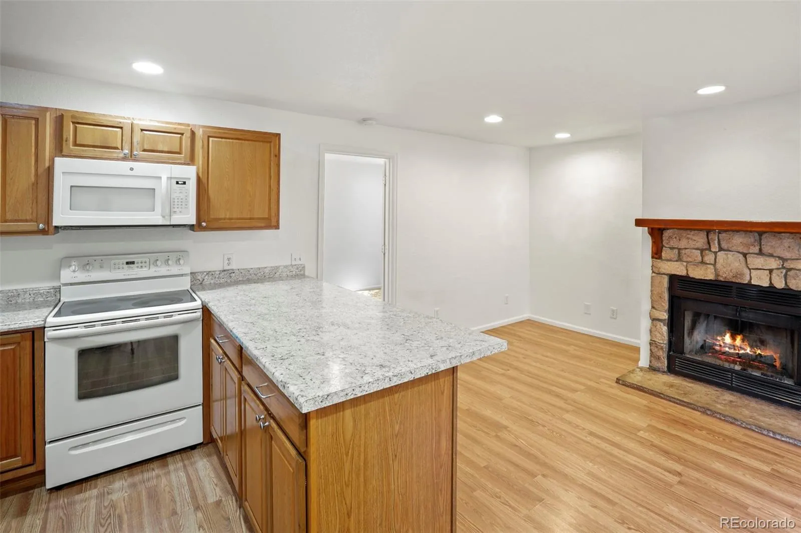 This is the perfect spot for comfortable simple living. This charming entry level end unit condo offers lots of natural light and tasteful updates. The open floor plan offers a kitchen, living area and bedroom. The kitchen has lots of counter space and cabinet storage along with room to pull up bar stools. Enjoy relaxing in the living room by a cozy wood fire in the cooler months or with air conditioning in the summer. The bedroom offers plenty of comfort for rest and a walk-in closet space. The full bathroom has been remodeled with gorgeous floor to ceiling tile and a vanity with streamlined fixtures. The washer/dryer is conveniently located in the unit. You will appreciate the covered carport and plenty of visitor parking. The view from the front door is calming and alluring as it looks out to the pool. All appliances included. This gem is hidden away in a quiet community surrounded by beautiful parks including Progress, Belleview, and Cornerstone. The location is superb with a just a short distance to enjoy so many amenities. Pirates Cove Water Park, Downtown Littleton, and the RTD Light Rail Station. The HOA is very reasonable for all the offerings. Trash, recycle, water and sewer all included plus a gorgeous pool!