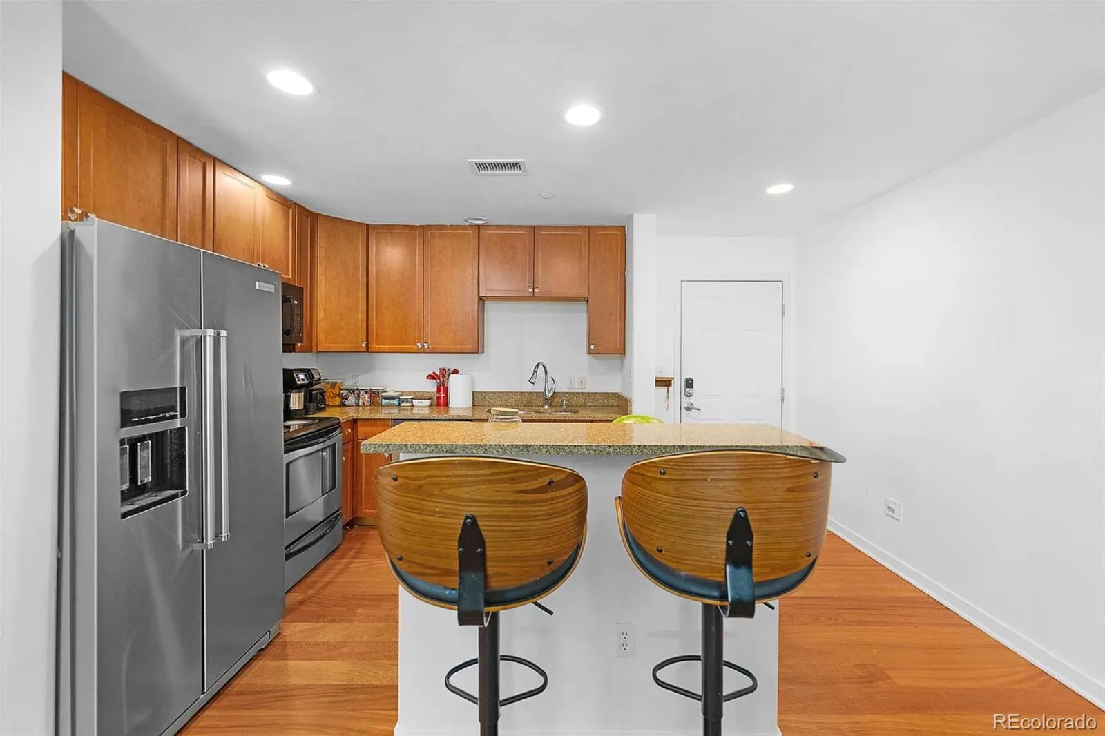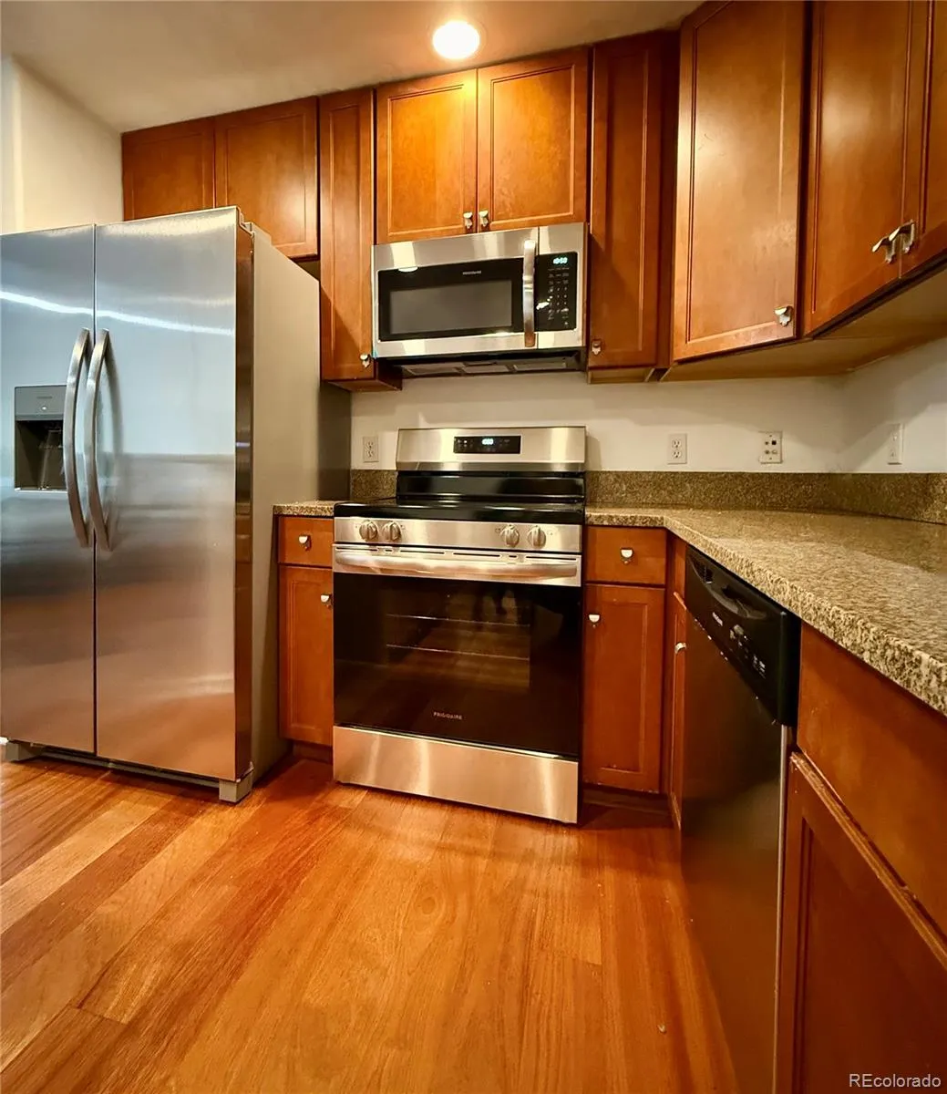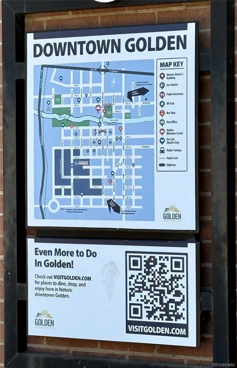 Wonderful two bedroom and 2 bathroom spacious condo, within easy walking distance to downtown Golden and all that it offers, and adjacent to the Clayworks development project currently underway which will reshape and reimagine what this already fabulous town and haven called Golden has to offer moving forward. Open floor plan and tall ceilings with the large living room and kitchen that features a brand new appliance package – leading out to a small shaded balcony with close by creek and partial mountain views. Two generous sized bedrooms and two full bathrooms, one off of the primary, as well as a stackable laundry closet in the unit, as well as two walk in closets make up the spacious condo home. Close to biking trails, Clear Creek, shopping and dining – minutes to trailheads and the majesty of the Colorado foothills – all at your doorstep, and just 15-20 short minutes downtown. This lock and leave home offers so much in Washington Station, a mixed use building with 1 reserved covered parking spots, and additional visitor spots available as well as off street parking.