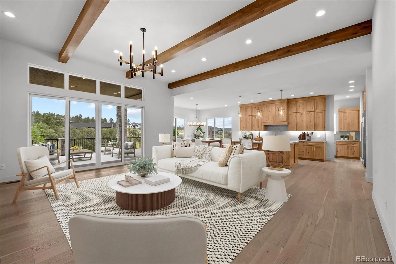 Now complete, this sprawling brand-new ranch blends presence and livability, designed with perspective, grounded in the landscape, and finished with intention in every detail. Set on two private acres in Franktown’s gated Arrowpoint Estates, where private trails wind through the pines and Pikes Peak lingers on the horizon. A defining material, Texas Lueders Limestone makes a strong architectural statement inside and out. Step into the great room, where vaulted ceilings with beams, white oak floors, and a 48-inch limestone fireplace create a grounded, welcoming centerpiece. Open the sliding doors and the room spills onto a vaulted covered deck, perfectly placed for evenings lit by Colorado sunsets. Built for serious cooking, the kitchen delivers with a 48-inch Wolf range, Sub-Zero refrigeration, two Asko dishwashers, and when the party’s on, the back kitchen picks up the slack with extra prep space and a walk-in pantry to keep the main stage spotless. The primary suite features direct access to the deck, a zero-threshold shower, freestanding tub, marble-topped vanities, and a walk-in closet anchored by a center island. Downstairs, the walkout basement extends the living space with a 60-inch linear fireplace, a wet bar, covered patio with pergola, and a workout room. The oversized four-car garage features enough depth for an extended-bed truck. Built by Gladstone Custom Homes—known for blending craftsmanship with livable luxury—this property delivers both presence and permanence. Tucked into a quiet corner of Franktown, just minutes from Castle Rock, Parker, and I-25, the location balances everyday access with Colorado’s beauty.