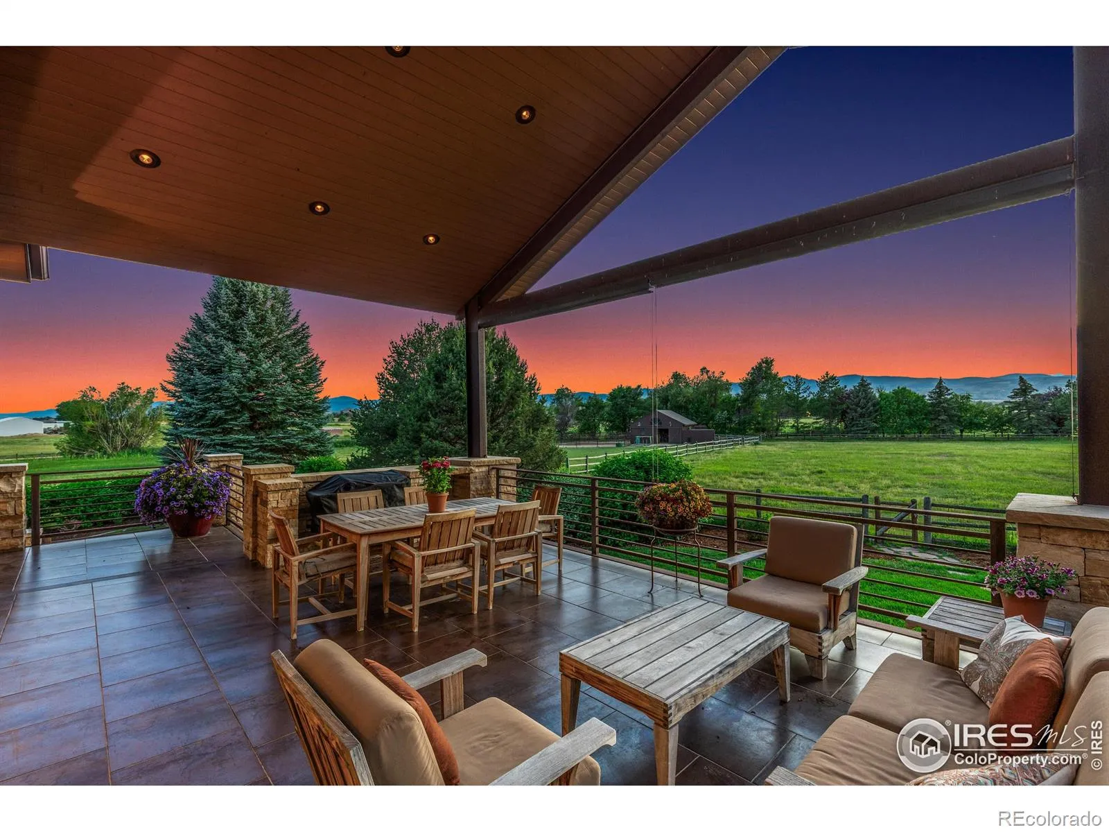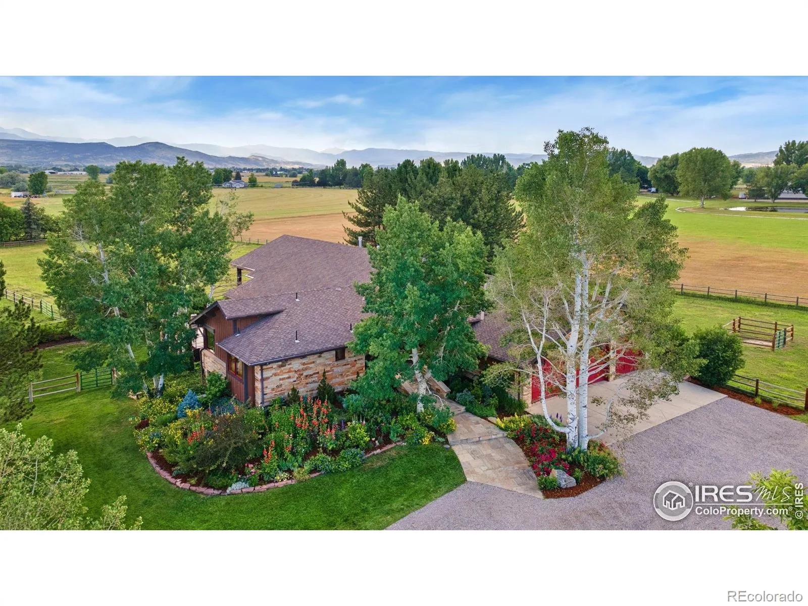 RUSTIC ELEGANCE MEETS PANORAMIC MOUNTAIN VIEWS – EXQUISITE EQUESTRIAN ESTATE ON 6.05 ACRES. More than a home – it’s a lifestyle. This 4 bed 4 bath ranch-style estate blends luxury, natural beauty and equestrian functionality, all set against the stunning backdrop of Longs Peak, Mt Meeker and the Flatirons. Privately gated and completely renovated by renowned Nassar Development in 2012, offering peace and privacy minutes from town. Soaring vaulted ceilings, natural stone, custom woodwork & Chef’s kitchen featuring Wolf Range/Sub-Zero/Double ovens, in-counter steamer, and Aspen Leaf Designs custom cabinetry, all designed for everyday living and entertaining. A dramatic stone fireplace and retractable glass wall connect the Great Room to a covered veranda and outdoor firepit, creating a seamless indoor-outdoor flow. The primary is private and tranquil with vaulted ceilings, spa-style bathroom and stunning mountain views. Three additional bedrooms and four well-appointed baths ensure comfort and flexibility for guests or multi-generational living. Equestrian facilities include a charming wood barn with 4 stalls, each with automatic waterers and individual paddocks, 3 fenced pastures, a riding arena, hay storage, shavings pit, and 3-rail iron fencing – all designed for function, safety and ease. James Ditch partial water share. Enjoy lush landscaping, mature trees and colorful gardens. Whether you’re enjoying a quiet morning, dining al fresco, the outdoor living areas are as inviting as the interiors. This is a rare opportunity to own a property that reflects the best of Colorado living: beauty, craftsmanship, nature – whether you’re unwinding by the fire, riding horses or hosting under the stars. If you’ve been dreaming of a home that inspires inside and out, this is it.