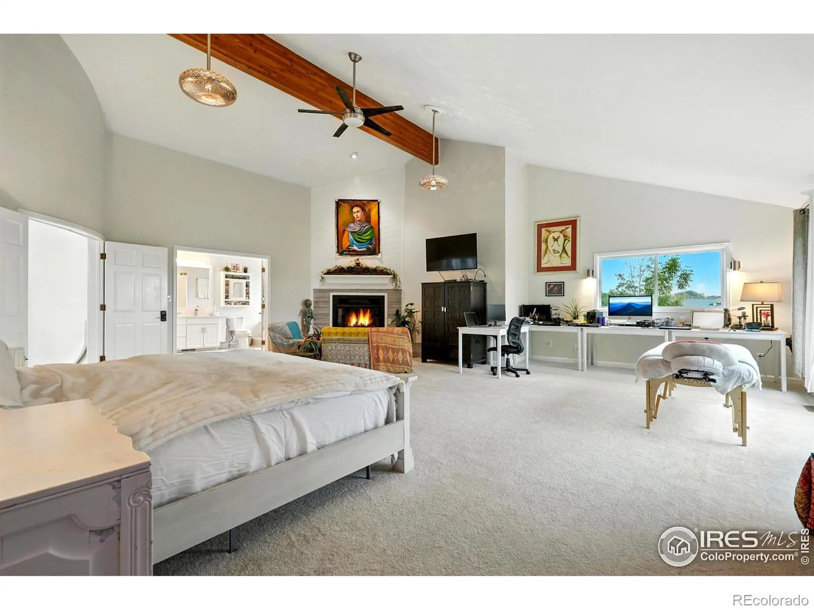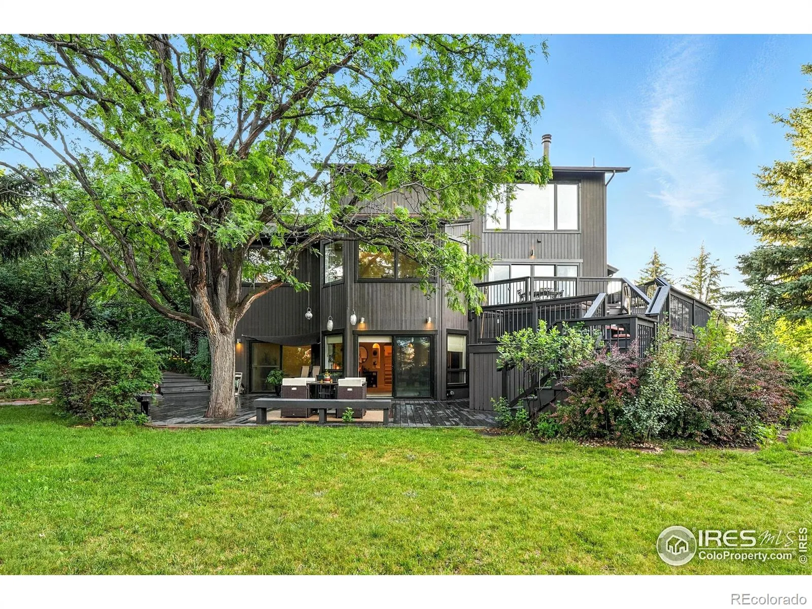 Modern artistry and serene luxury converge in this exquisitely remodeled Lake Valley Golf Course estate, just eight minutes from downtown Boulder. Nestled on over half an acre with private access to a swimming lake, golf, tennis, basketball, and hiking, this custom 6,200 sq ft retreat redefines elevated living. A stunning blend of circular architecture, feng shui balance, and contemporary design creates seamless flow and functionality throughout. The expansive primary suite feels like a private sanctuary with one of three wood-burning fireplaces, a spa-inspired five-piece bath, soaring 25-ft beamed ceilings, and custom walk-in closets. Light pours through new windows and doors framing breathtaking sunrises and mountain views. The sculptural spiral turret connects main floors with 3Br/2.5 BA over two levels, leading to an above ground walk-out lower level 2Br/2BA with an elegant in-law suite featuring a second primary ensuite bath with Jacuzzi, additional laundry, and private entrance surrounded by perennial flower gardens. Mature landscaping and over 1,500 sf of outdoor living invites connection and calm with multiple decks and patios, a hot tub, far-infrared sauna, organic raised beds, fruiting apple, plum, and peach trees, and a Japanese-inspired meditation deck hidden among the trees. Thoughtful upgrades include new interior and exterior paint, modern appliances, countertops, luxury tiled baths, new windows and doors, and gas backup generator. Lake Valley residents enjoy a pvt swimming lake/beach, tennis courts, basketball, miles of trails, and the Persimmon Grill just a short stroll away-ideal for sunset cocktails or casual business meetings with dramatic Flatiron views. Low HOA of under $70/month. Priced at one-third the cost per square foot of North Boulder homes just minutes south, yet offering triple the space and tranquility. Seller is a licensed Colorado real estate broker and current occupant. Matterport tour available upon request for out-of-town guests.