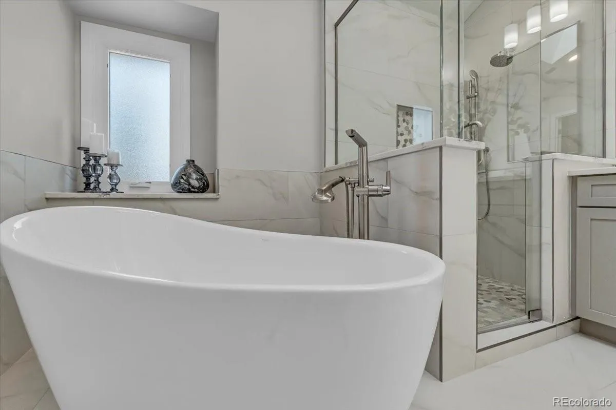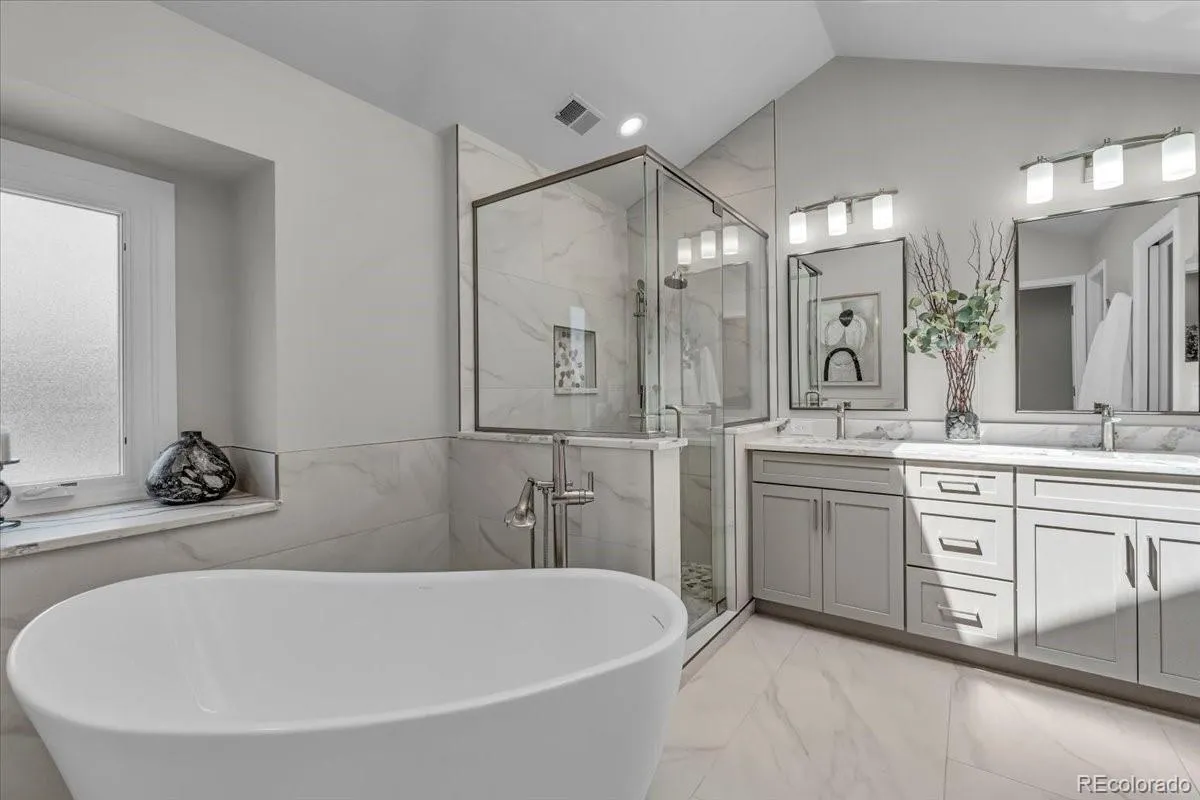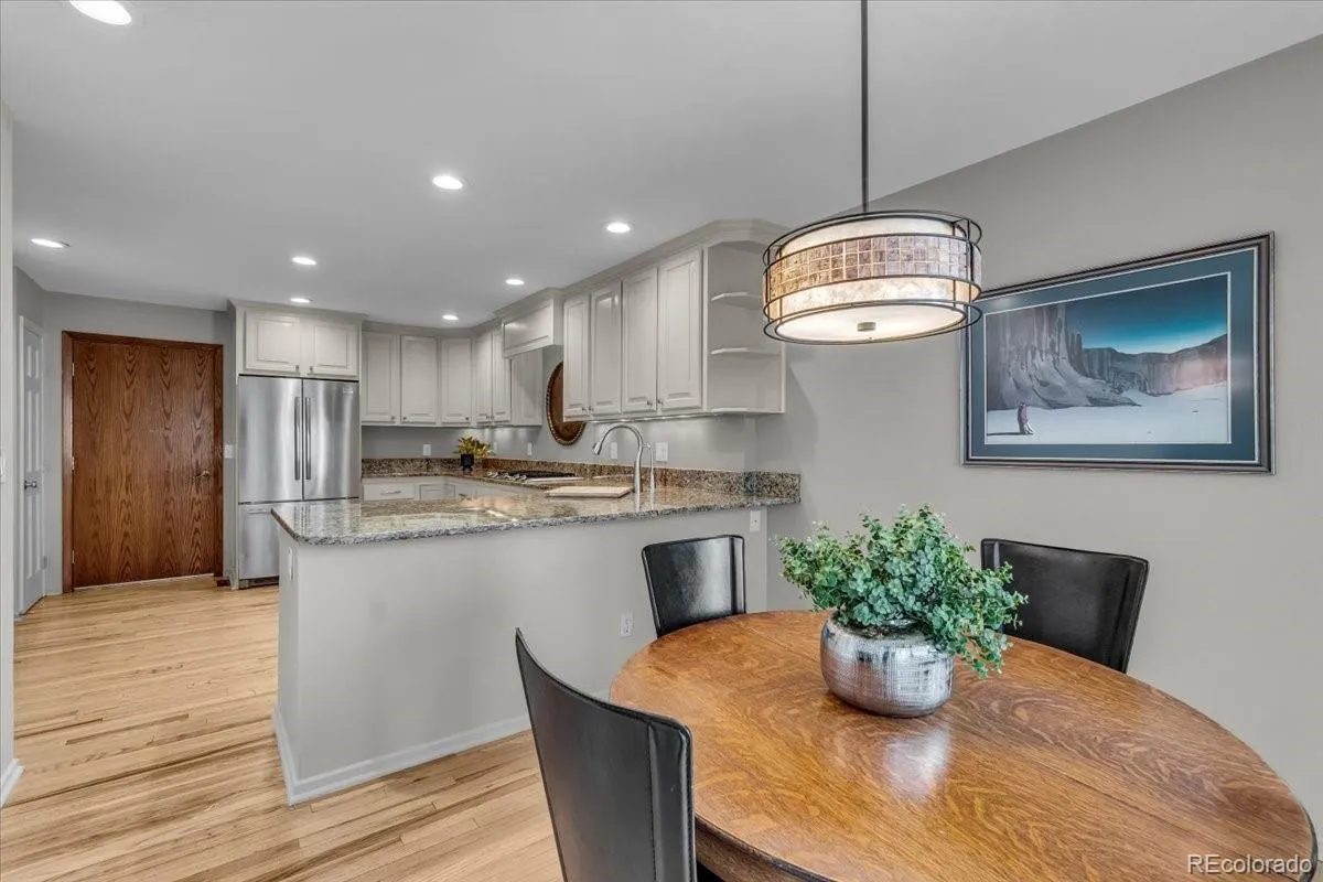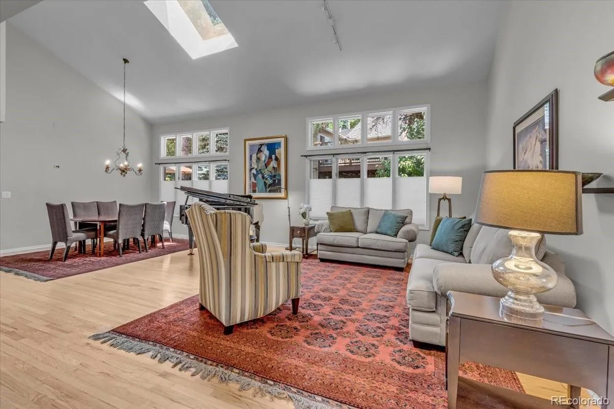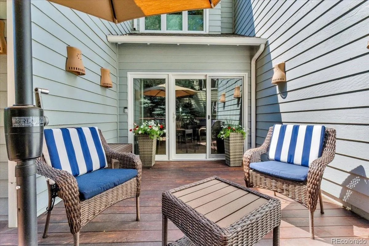 Enjoy secluded luxury living in the heart of the DTC in this stunning townhome. Tucked away in the lush, private enclave of Stoney Brook, this gorgeous townhome offers the perfect blend of tranquility and high-end living right in the heart of the Denver Tech Center. Step into designer elegance with a grand living and dining room featuring soaring vaulted ceilings, a skylight, and gleaming hardwood floors. The front room with outdoor access can be a main-floor office, separate dining room or den. A chef’s dream kitchen completes the main level. The kitchen boasts granite countertops, stainless steel appliances, double ovens, a Dacor gas cooktop, and a sunny breakfast nook. Upstairs, the luxurious primary suite is a true retreat with vaulted ceilings, a cozy sitting room with a gas fireplace and stacked stone wall, and a spectacular spa-inspired bathroom. Recently remodeled, it includes a freestanding soaking tub, oversized shower, dual sinks, heated floors, private water closet, walk-in closet, and an auto-sensor skylight. The second upstairs bedroom is en-suite with a 3/4 bath, window bench, and double closets. The finished basement expands your living space with a huge great room, built-in bookcases, workout area, a bedroom with built-in dresser, and a charming 3/4 bath adorned with hand-painted Mexican tile. Wine lovers will appreciate the impressive 800+ bottle wine cellar and walk-in cedar closet. Storage is abundant with a massive storage room and additional closets throughout. Enjoy Colorado living on the expansive back deck made of Benchmark Thermory Ash. Hardwood floors throughout the home add warmth and elegance. Stoney Brook offers a serene lifestyle with ponds, walking paths, tennis and pickleball courts, and a clubhouse. Just minutes from Wallace Park and Cherry Creek Reservoir, with unbeatable access to all DTC has to offer.