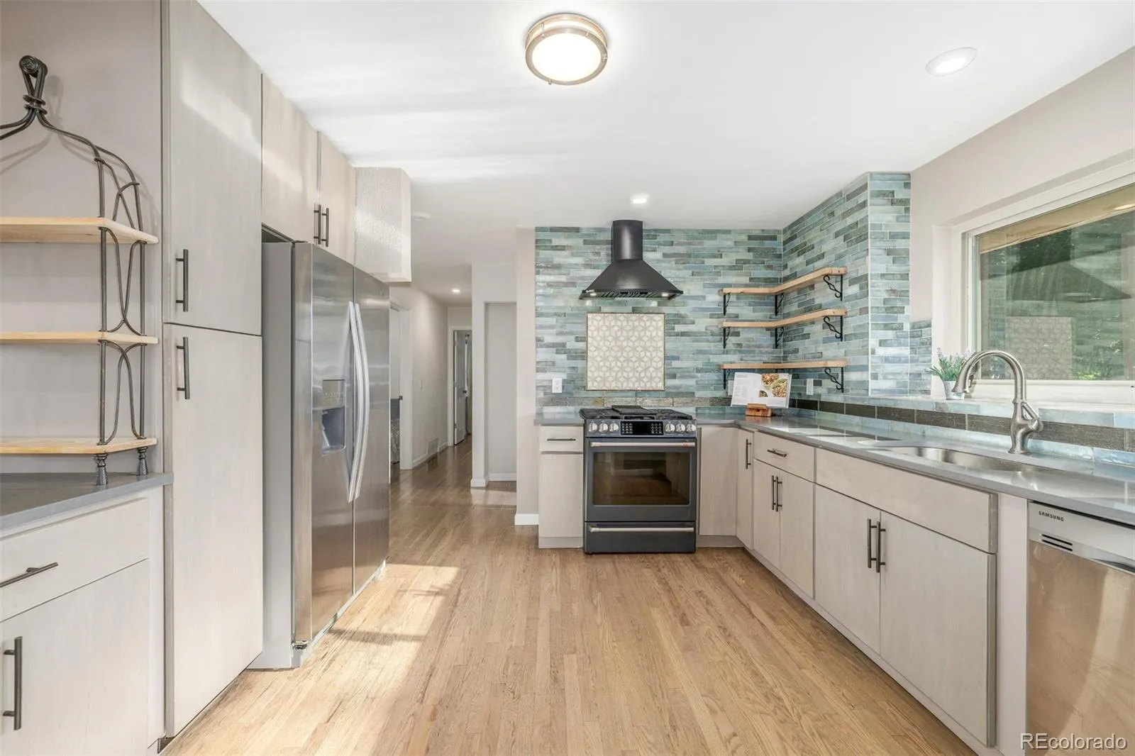 This lovely brick home is located just a mile from Downtown Littleton! Inside you will find 5 bedrooms, 3 bathrooms, a sizeable living & dining area with wood flooring and a fireplace to keep you warm during the winter months. Prepare delicious meals in this fabulous kitchen, equipped with quartz counters, tile backsplash, stainless steel appliances (including a Cafe gas Stove) and a breakfast bar. The primary bedroom showcases two closets and a private bath with dual sinks for added comfort. Continue downstairs into the inviting basement with high ceilings, plenty of natural light and a large family room boasting soft carpet and a 2nd fireplace. The expansive backyard will not disappoint and includes an open patio, 2 convenient storage sheds and a garden. No maintainance needed as this one has a newer roof, furnace, Central A/C and Hot Water Heater. You will enjoy true Old Littleton living being able to walk or ride your bike a 1/2 mile to Sterne Park, and 1 mile to Little Creeks Trail connecting to the S. Platte River Trail and along the way you can make a stop at one of the local coffee shops, Craft Breweries or wonderful restaurants!