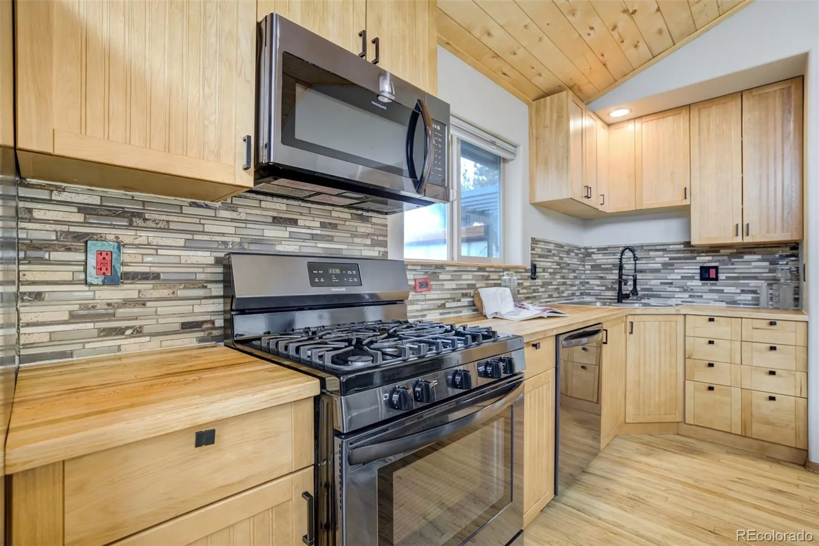 Inside, the main level features tongue-and-groove ceilings, wood floors, and a wood-burning stove that adds both charm and comfort. The open kitchen includes a butcher block island and connects easily to the main living space, creating a practical flow for daily living and hosting. The lower level includes a pellet stove, an additional living area, and direct access to the outdoors. Both bathrooms have been updated, and walkouts on both levels lead to two full decks with great views of the surrounding valley and mountains.