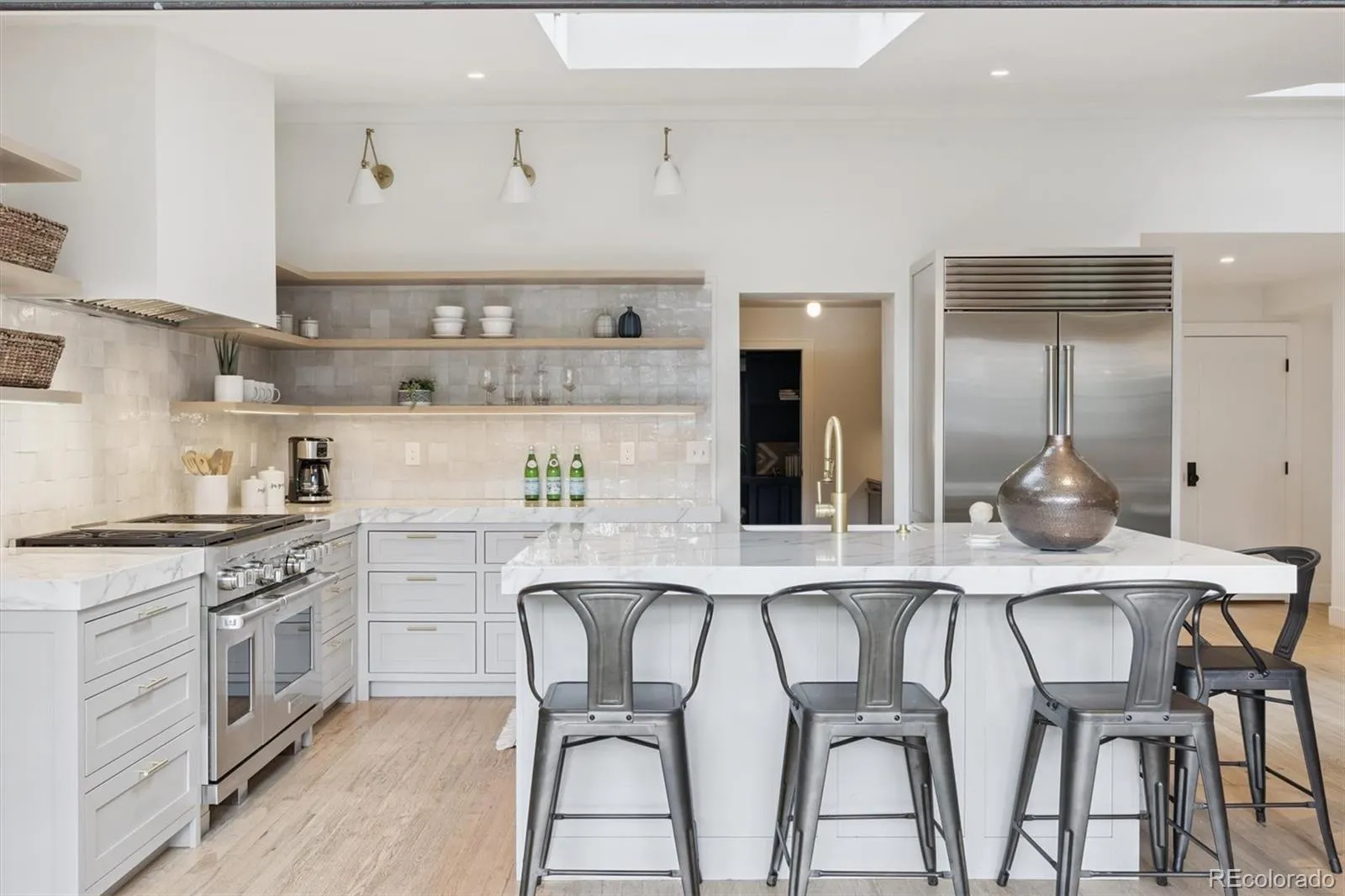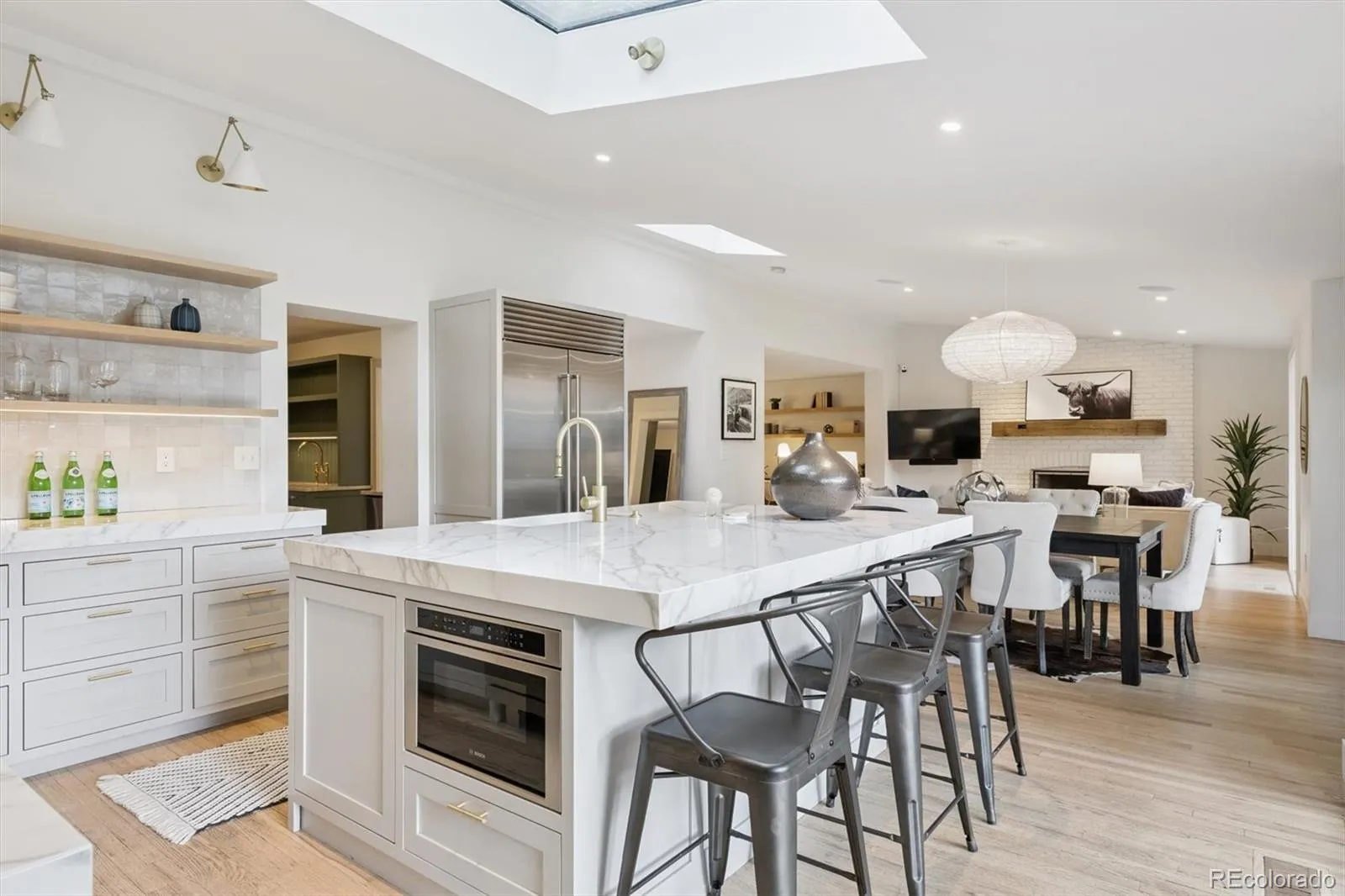 Open House Saturday Sept 20 11:30 AM to 1:30 PM. This classic Crestmoor Park Filing One home is fresh from an $800k+ renovation. The main floor now features a gourmet kitchen that is integrated into the dining area, great room and is connected to the large back yard via a movable glass wall system. A hidden mudroom with 1/2 bath provides access to the garage and a third door to the backyard. A butler’s pantry connects the front library to the kitchen. Concealed by the butler’s pantry are a storage pantry and guest ½ bath. A classic formal living room is on the south side of the center hall stairs. The great room has a large fireplace and doors to the back patios. Two skylights provide additional natural light to the kitchen and dining areas.