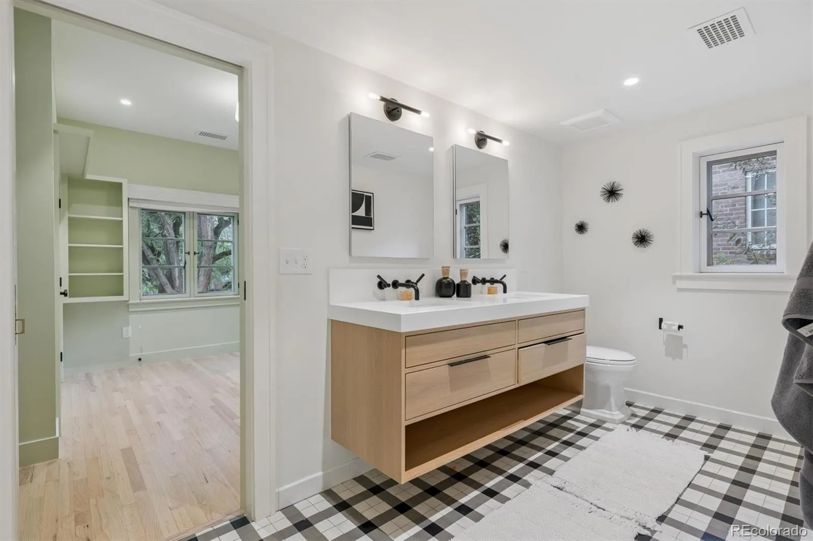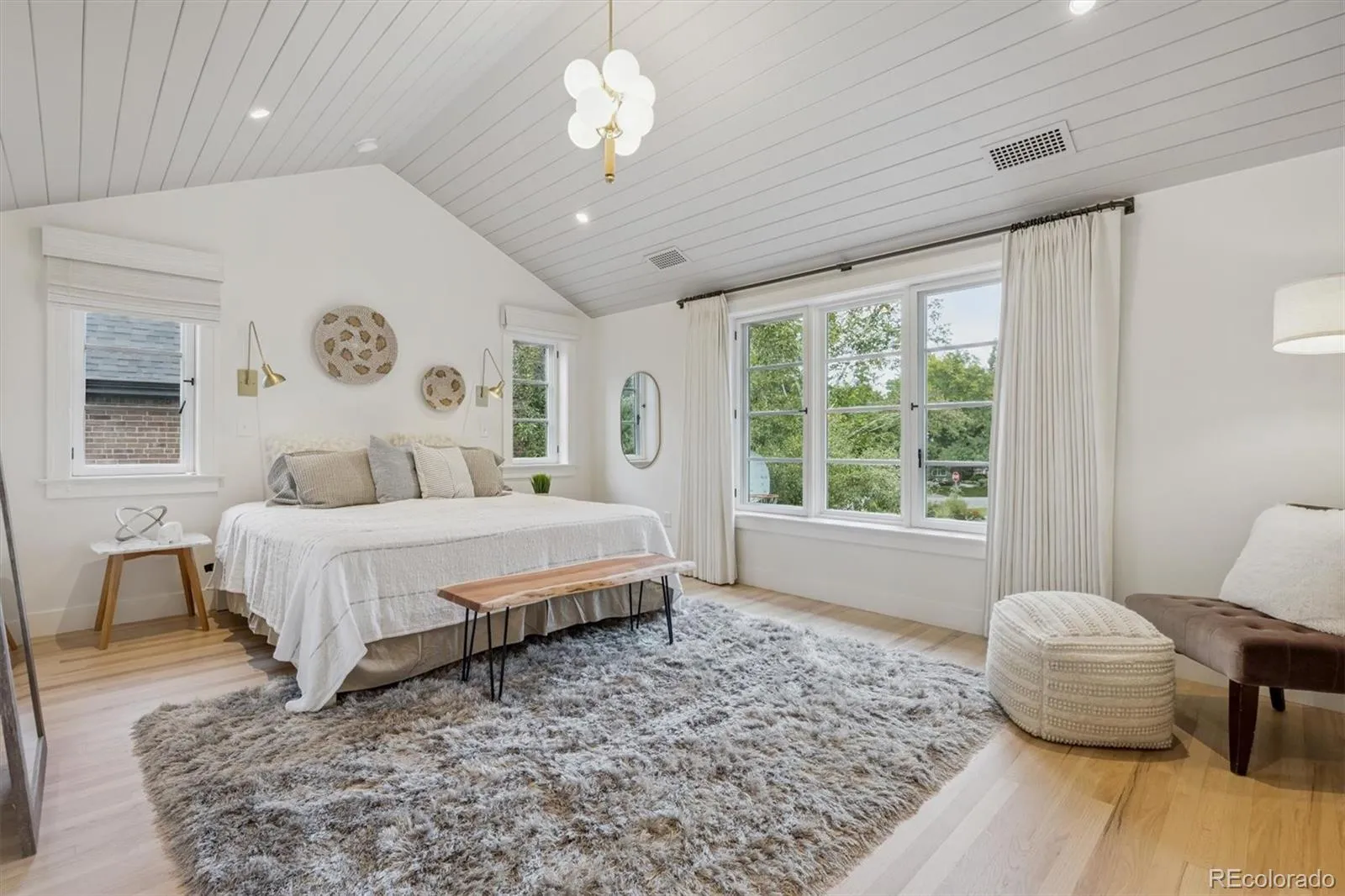 The second story was taken down to a blank slate in order to raise and vault ceilings, relocate rooms, add bathrooms in order to provide a modern and practical layout. The primary bedroom has an en suite 5 piece bath with soaking tub and private terrace. A primary suite walk in closet and additional hallway storage are close to the upper level laundry room. Each of the three secondary bedrooms now have large sets of double door closets with built ins and direct access to a bathroom.
