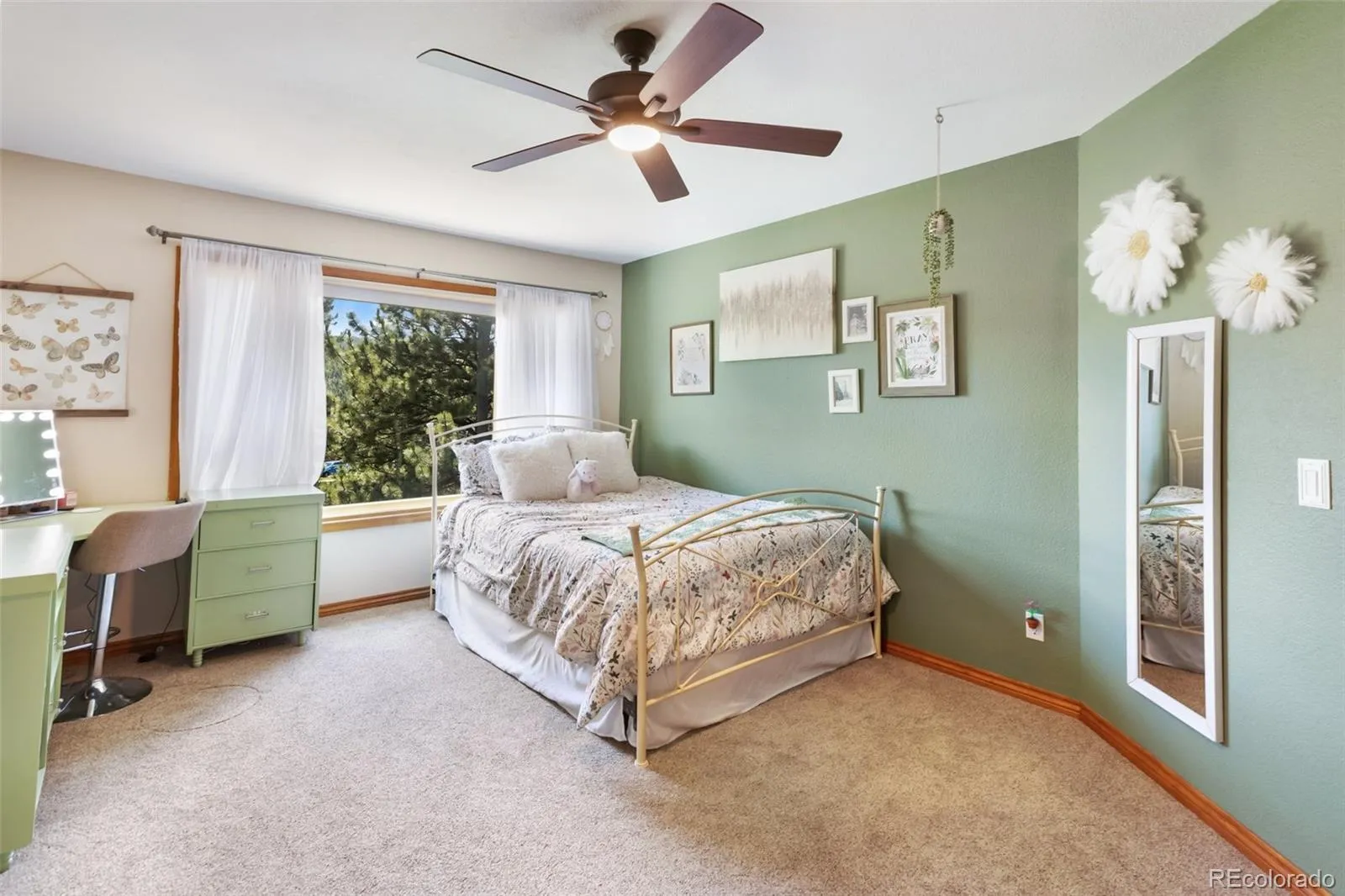 Welcome to your mountain-view dream home! This thoughtfully updated property combines comfort, function, and stunning views of Pikes Peak—all from your own backyard. As you arrive, a finished attached two-car garage and a beautifully stamped and stained concrete sidewalk (replacing the former flagstone) set the tone. Step past the front door and onto the expansive 15×35 ft patio—perfect for entertaining or just soaking in that clear, unobstructed southern view of Pikes Peak. Inside, wood-look tile flows throughout the main floor, complimented by plush new carpet installed in 2023. A separate dining room connects to the chef’s kitchen, complete with soft-close cabinetry, matching appliances, spice drawer, large appliance cabinet, and ample storage—all part of a 2020 remodel. The spacious main-level master suite features its own fireplace and a full bathroom with a jetted soaking tub, stained-glass accents, and an artistic tile shower. Step from the master to a private side deck with a hot tub (new cover and screen, recently serviced). A cozy family room with a floor-to-ceiling fireplace, bonus office/flex room, half-bath, and under-stairs storage complete the main level. Upstairs you’ll find three large bedrooms, a loft area, and a newly remodeled bathroom. Updates include new lighting, ceiling fans, and a new furnace (2022). The fully fenced backyard offers plenty of space for pets to roam, while the 30×30 shop—with a full concrete apron and separate driveway—adds incredible functionality for vehicles, toys, or workshop needs. There’s even a 3.5 ft deep crawl space spanning the length of the home for seasonal storage, and additional storage above the garage in the attic. This property truly checks every box—don’t miss the chance to make it yours!