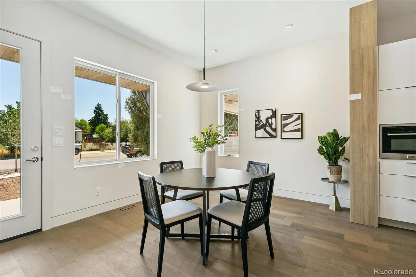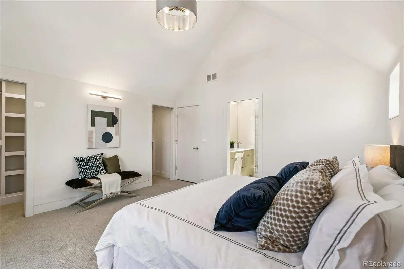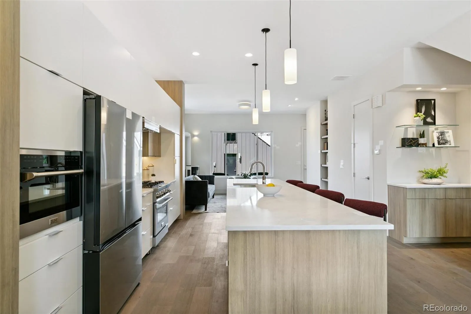 Incredible SOBO New Build with a Mid-Mod/Scandinavian vibe! Super artsy, creative design! FULL of cool, unique, gorgeous custom features! HALF-DUPLEX. Almost 500 Extra Square Feet in covered patios! ENERGY EFFICIENT! OWNED SOLAR PANELS! Not leased! If you want to live where you mega-save on utilities, in an amazingly thought-out and beautifully designed new build, then this gorgeous home is for you! Almost completely maintenance free exterior! All metal vertical siding! 97% Efficient Carrier Furnace, Owned Smart Sandbox Solar system, Hybrid Heat Pump Water Heater, Highest efficient Carrier A/C unit (amazingly quiet!), Andersen Fibrex Windows, LED lighting, Highest Insulation – R60 roof and R30 walls! Major attention to detail and artistry you rarely find in new construction: Custom GLASS Stair Wall with Handmade Maple block railings matching the gorgeous steps!! Covered front & rear patios and upper decks all have Custom tongue and groove Cedar Ceilings with Internal Trex drainage system: an extra 500 sqft in exterior decks! TALL Ceilings -10′ main floor, 14′ feet vaulted upper, and 9′ Lower level! Stellar kitchen that any chef will love! 12′ island with higher-end quartz, bookended cabinetry, Samsung twin cooling fridge with beverage center, dual fuel gas range, above/under LED lighting! Open, bright main floor plan flows from the front to the rear, with no interior soffits!! Cozy Living space with gas Scandinavian fireplace, custom maple shelving, huge windows! Custom features galore: flat drywall finish, flush baseboards, handmade maple vent covers, cool dry bar, wall washer LED lighting, soft close pocket doors, window well lighting, mud room bench and shelving. Upstairs offers two large bedrooms! Skylights! Primary with walk-through closet! Dual Shower Heads! Lower level has a great living space, huge bedroom and bath! Wet Bar! Close to all the fun action on S. Broadway! No HOA. Party Wall agreement with north unit. Builder Warranty! Walk to Light Rail!
