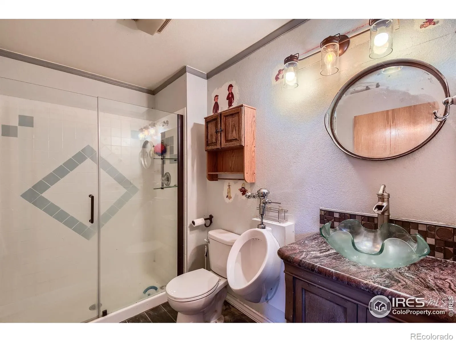 Versatile 1.5-acre retreat with stunning mountain views, no HOA or Metro Tax District, and rare FA1 zoning-bring your horses, goats, or chickens! Only 5 minutes away from I25. This 5-bed, 3-bath home offers true multi-generational living with a fully finished walk-out basement featuring a private entrance, full kitchen, family room, 2 bedrooms, and 3/4 bath-ideal for extended family or rental income. The light-filled great room features soaring ceilings, picture windows framing the Rockies, and a gas fireplace. The updated kitchen impresses with quartz counters, farmhouse sink, wall ovens, gas cooktop island, and two-tone cabinetry. The main level includes 1 bedroom and full bath, while the upper level offers 2 bedrooms, a loft, and a full bath. Enjoy the outdoors from the spacious upper deck or shaded patio below. Additional highlights include owned solar, a newer roof, newer HVAC system, an oversized garage, RV parking, and mature landscaping. A truly flexible home for modern Colorado living.