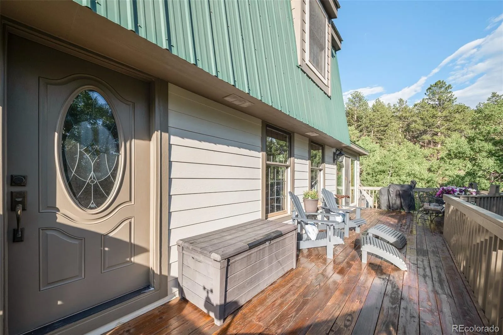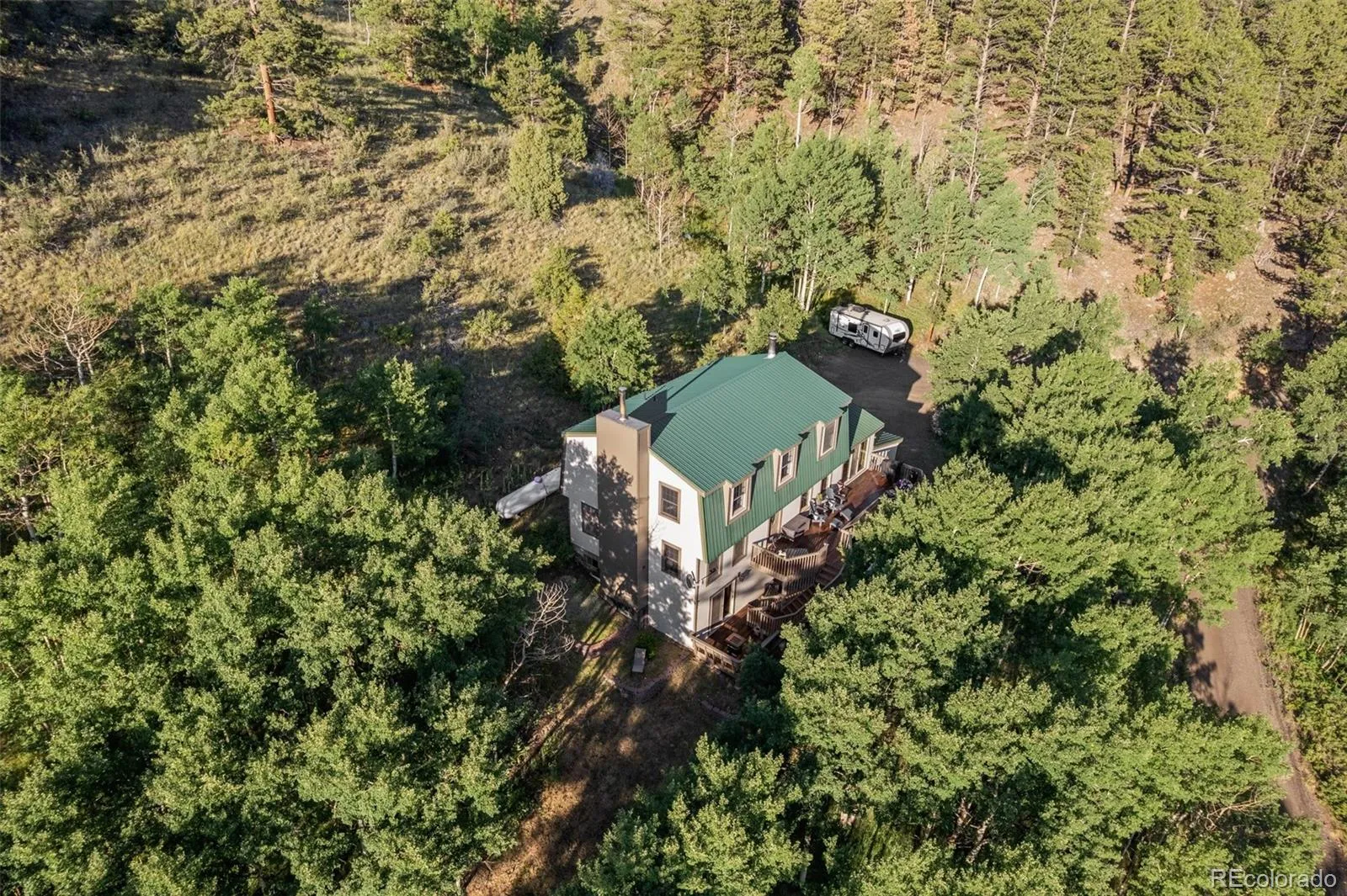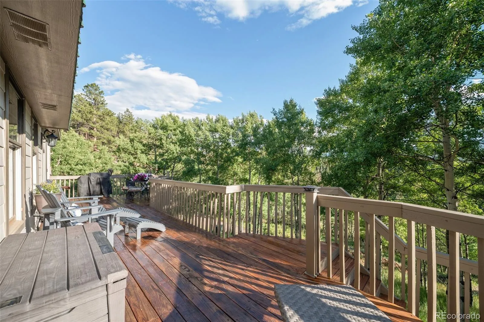Tucked away on 2.75 acres and bordering the Arapaho National Forest, 67 Thistle Trail is a fully remodeled mountain retreat that blends refined comfort with Colorado adventure. Nearly 3,000 sq ft of living space includes four bedrooms, two and a half bathrooms, a wine room, cozy fireplace in the living room, wood-burning stove in the kitchen, and expansive decks for relaxing under the stars. The open-concept kitchen offers a large island, gas stove, and double oven, while the finished basement adds a bonus room and fourth bedroom for guests. An oversized 2-car garage with workshop, large laundry/utility room, and zoned heating add convenience. Surrounded by mature aspens, fall here is especially breathtaking.