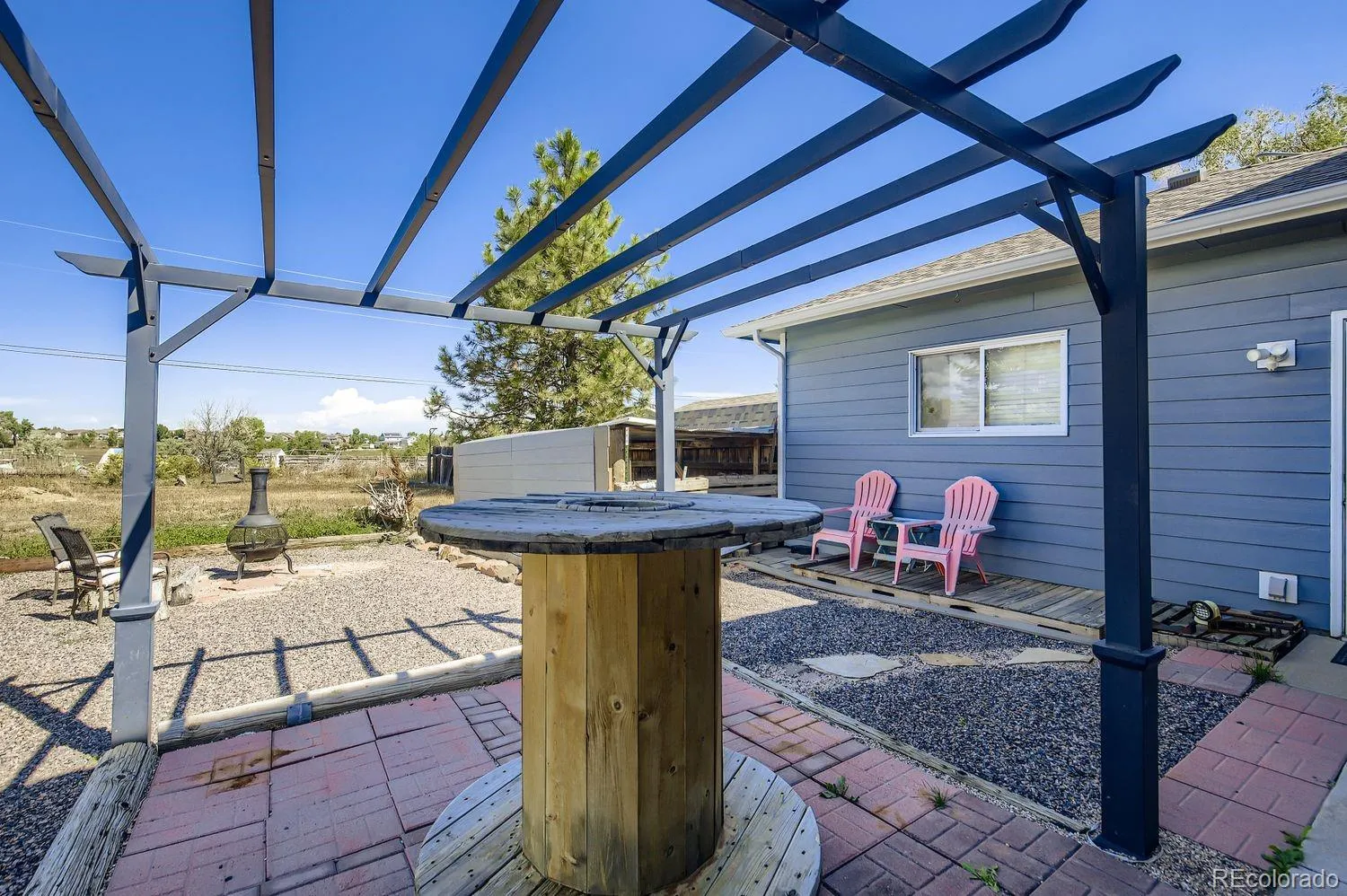 Versatile 1.5-acre retreat with stunning mountain views, no HOA or Metro Tax District, and rare FA1 zoning-bring your horses, goats, or chickens! This 5-bed, 3-bath home offers true multi-generational living with a fully finished walk-out basement featuring a private entrance, full kitchen, family room, 2 bedrooms, and 3/4 bath-ideal for extended family or rental income. The light-filled great room features soaring ceilings, picture windows framing the Rockies, and a gas fireplace. The updated kitchen impresses with quartz counters, farmhouse sink, wall ovens, gas cooktop island, and two-tone cabinetry. The main level includes 1 bedroom and full bath, while the upper level offers 2 bedrooms, a loft, and a full bath. Enjoy the outdoors from the spacious upper deck or shaded patio below. Additional highlights include owned solar, a newer roof, newer HVAC system, an oversized garage, RV parking, and mature landscaping. A truly flexible home for modern Colorado living.