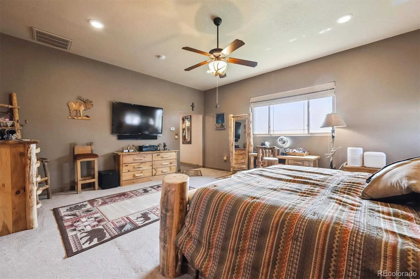 Freshly painted upstairs bedroom, bathroom, hallway, main level laundry room and guest bathroom. Newly carpeted in upstairs bedroom and hallway. New electric fireplace installed! This beautiful one of a kind custom home has it all! 2.35 fenced acres, 5 bedrooms with 2 primary suites one main floor and one upper level. Total of 5 bathrooms, 2 full baths and 3 are 3/4 baths. Show stopping chef’s dream kitchen is extra large and is absolutley stunning! Top of the line cabinets, prep sink, beverage fridge, granite counters, top of the line appliances and finishes. Primary suite on main level is an extra large private retreat with high ceilings and extensive space all done with top of the line finishes. Includes surround sound and a seperately controlled thermostat. Main level has full access to large flagstone patio that has Sonos outdoor speakers all with a view of the mountains! Fully fenced acreage with beautiful white split rail fence with mesh backing. Multi use out building with 220, electric, heating and cooling unit, internet receiver, seperate breaker box and sub panel . This space can be used as a workshop or as a barn with 2 stalls for horses. It has 2, 8 foot man doors and 2, 8ft tall garage doors with garage door openers. You can drive through the building. Concrete floors except in the stall areas. Well water with a new replacemnt pump installed on the well 2 years ago. New roof in 2025. Septic was pumped in 2025. 220 v in basement. Negotable items are fridge in the garage, TV’s in main floor primary and kitchen nook, 2 riding lawn mowers.