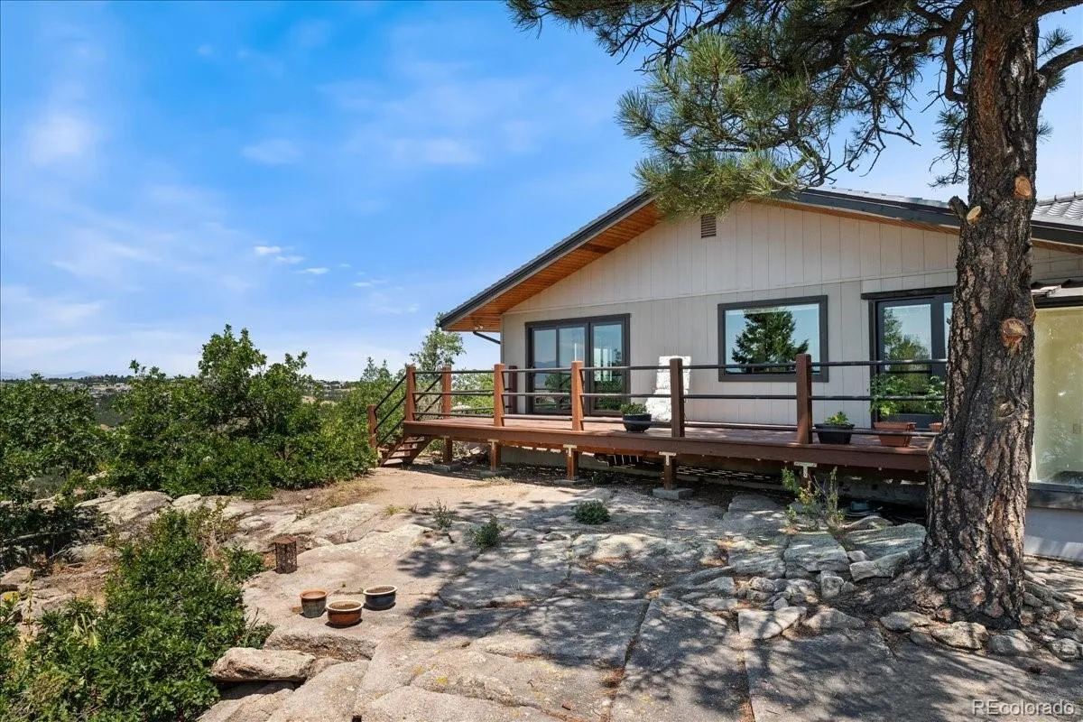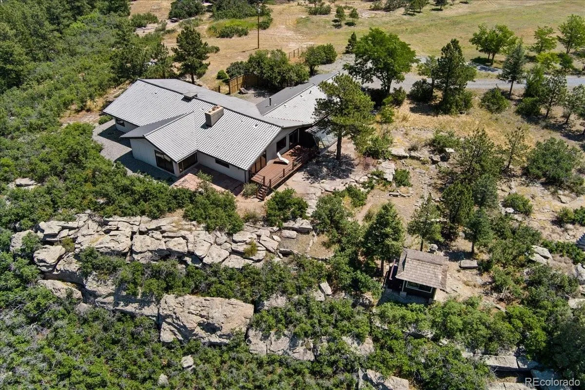 This one of kind house is for sale for only the second time ever. Inspired and built to reflect Japanese style and function, this custom, high quality home measures in at over 3,000 sq ft and sits on 3.35 acres. With spectacular views from Pikes Peak to Longs Peak, this home is unrivaled in its location, layout and uniqueness. Located in Happy Canyon, an amazing and unique neighborhood with no HOA or restrictive covenants, where homes sit on beautiful acreages but are just a mere 15 minutes’ drive to Park Meadows Mall or the downtown area of Castle Rock. This Custom build features an open flow design from the large entry leading into the wonderful great room, then into the dining room and kitchen area. The design of the home offers enchanting sunset viewing from the large, southwestern facing deck and picturesque views are to be found from all rooms and every angle. Steps away from the home is a custom “Tea Room” building, ideal as a private retreat overlooking the front range. This home truly blends a unique combination of quality, artistry and privacy. The home has been freshly painted and features many new windows installed this year. There is room on this large lot for possibly establishing additional outbuildings, garages, etc. in accordance with local regulations and codes. The sellers current VA mortgage is assumable at an attractive 2.25% interest rate. The home will be sold in strictly “As Is” condition.