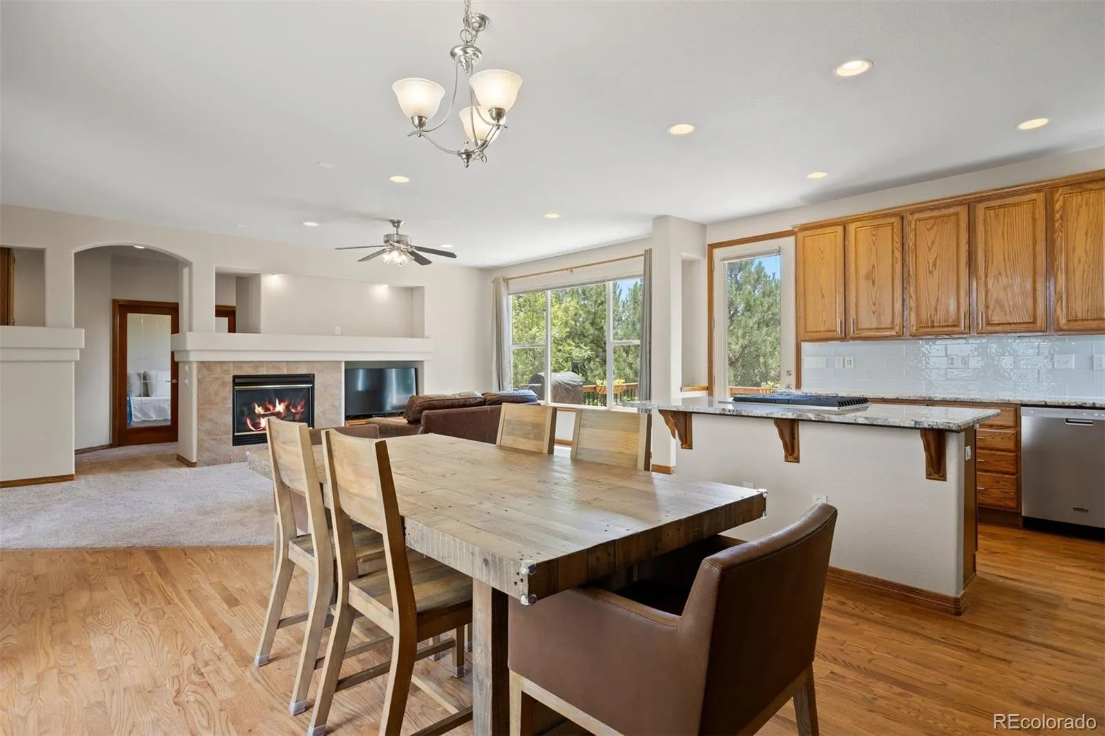 Continue down the hall to find a spacious formal dining room, ideal for hosting, which flows effortlessly into the interactive kitchen and family room. Whether you’re enjoying a cozy fire or washing dishes at the kitchen sink, take in the serene southwest views from both spaces. The updated kitchen is a chef’s dream, featuring granite countertops, stainless steel appliances, an oversized island, and generous cabinetry. Step out to the private side patio for al fresco dining—accessible from both the kitchen and the hallway near the dining room.