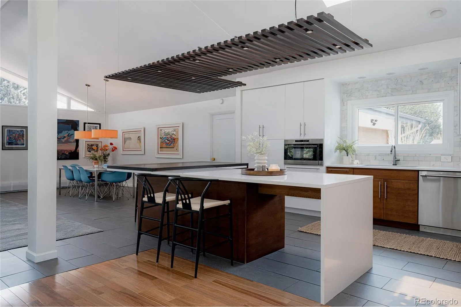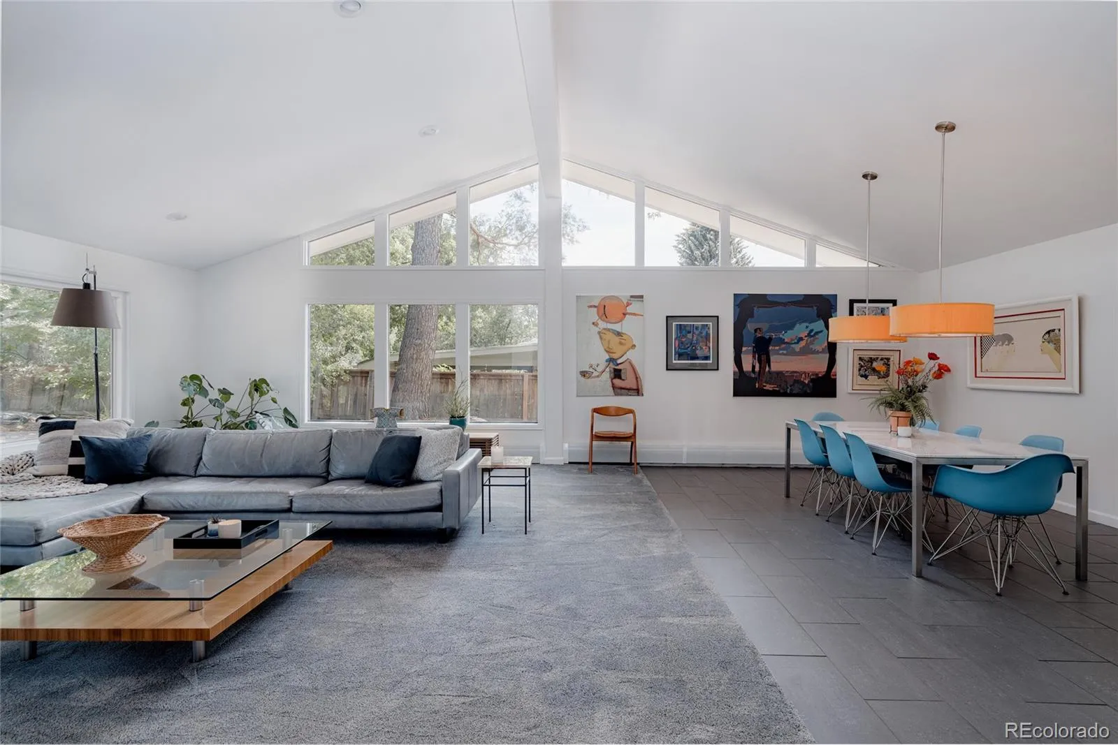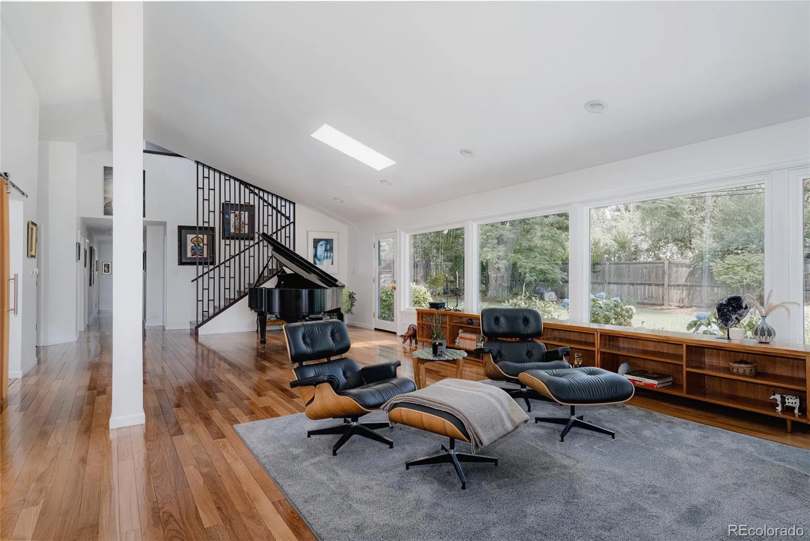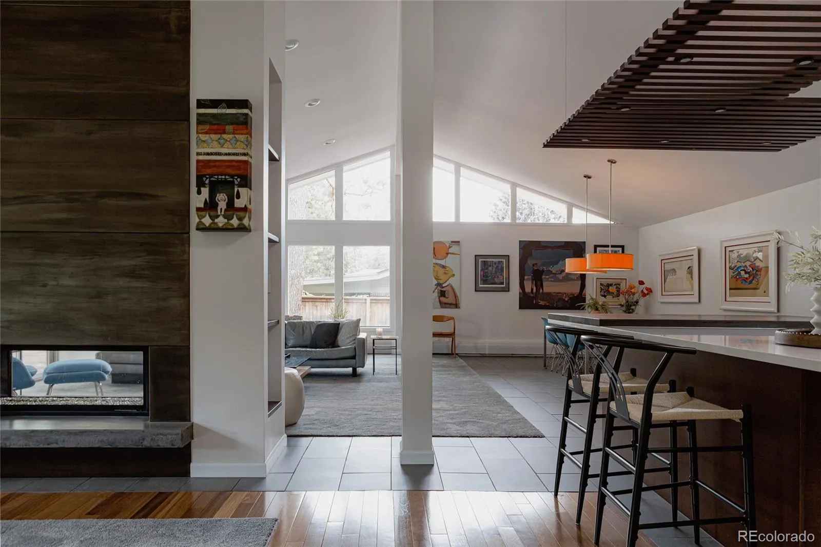 Rare Mid-Century Modern Gem in the Heart of Cherry Hills. Tucked into one of Denver’s most coveted suburbs, this rare mid-century modern masterpiece blends timeless architecture with thoughtful updates for today’s lifestyle. Step inside to soaring vaulted ceilings and dramatic walls of glass that flood the home with natural light and frame serene views of the lush, private backyard. Designed with entertaining in mind, the open-concept layout features a striking sitting room—spacious enough to showcase a grand piano—centered around a stunning double-sided fireplace. The fully updated chef’s kitchen is the heart of the home, offering a seamless flow to both formal and informal living spaces. Whether you’re hosting elegant dinner parties or enjoying cozy nights by the fire, this home delivers warmth and sophistication in equal measure. A spacious family room invites relaxed gatherings, perfect for movie nights or cheering on the big game. The main level also features a stylish office that doubles as a serene workspace or imaginative playroom, plus a second office, three generous bedrooms, and two beautifully appointed bathrooms. Upstairs, the luxurious primary suite is a true retreat. Enjoy the ambiance of a private fireplace and sitting area, dual walk-in closets, and a spa-like five-piece bath—your own sanctuary at the end of the day. Outside is an impeccably landscaped backyard oasis, where mature trees provide shade and privacy. A large patio offers the perfect setting for al fresco dining, morning coffee, or evening gatherings under Colorado skies. Ideally located near scenic trails, parks, and just blocks from shopping and dining along Hampden Avenue. With easy access to I-25, I-225, and US-285, you’re minutes from downtown Denver, the Denver Tech Center, DIA, and your next mountain adventure. This is a beautifully maintained and thoughtfully updated home in one of the area’s most sought-after communities. Welcome home.