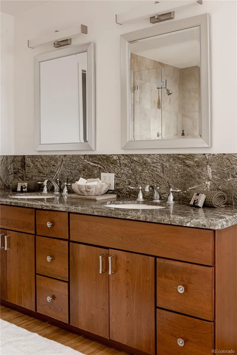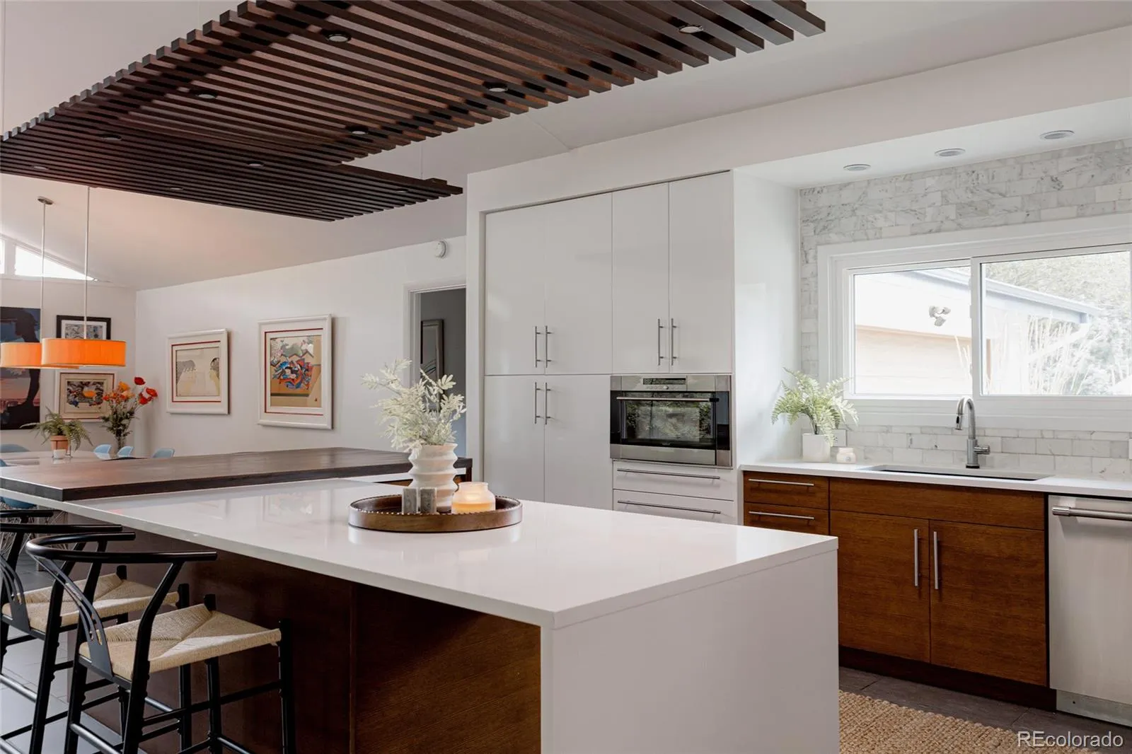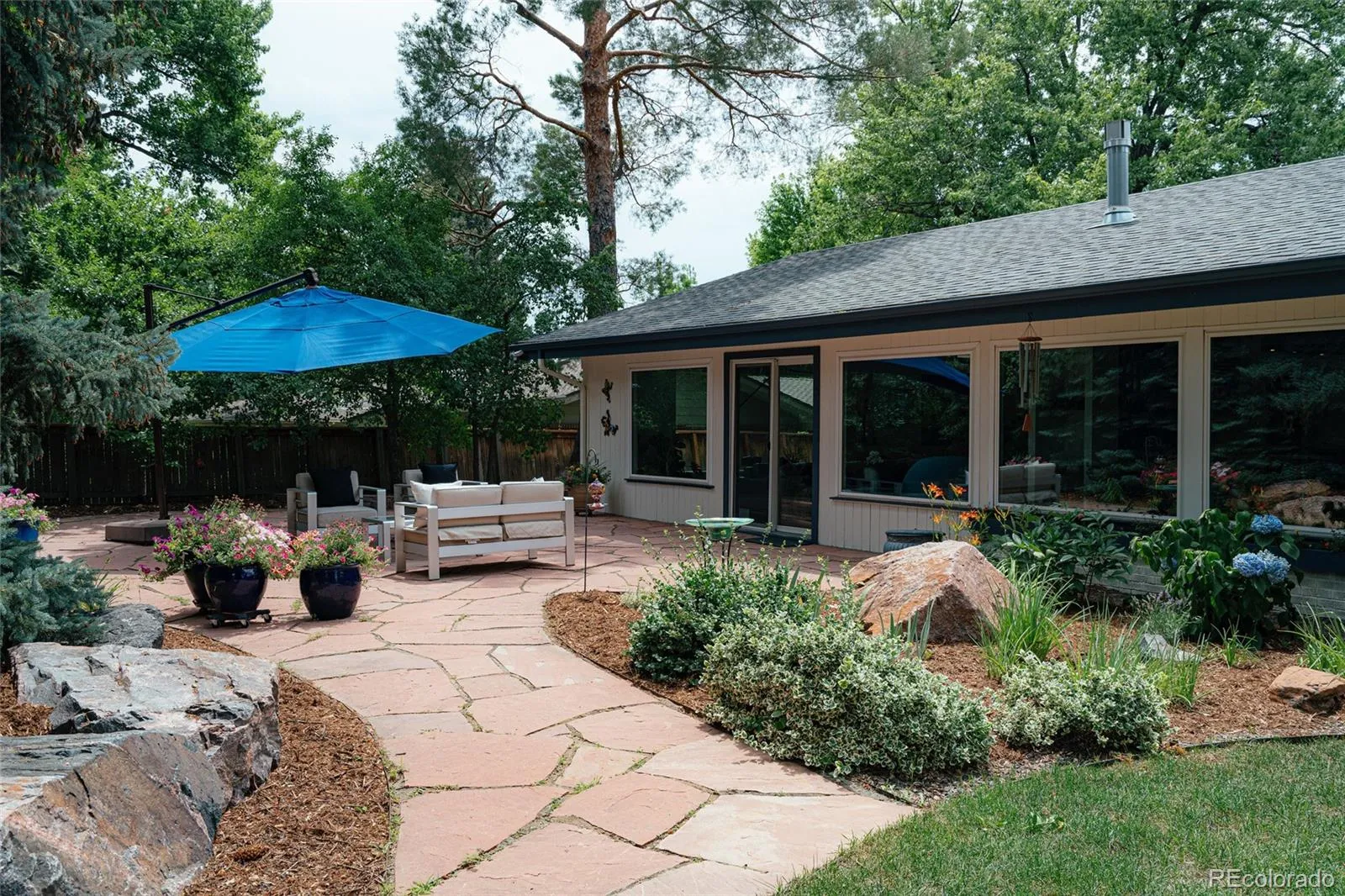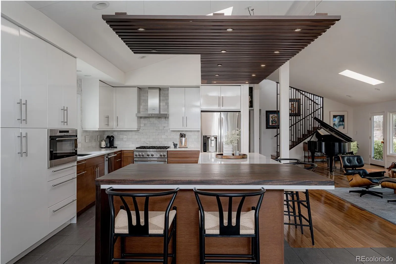 Rare Mid-Century Modern Gem in the Heart of Cherry Hills. Tucked into one of Denver’s most coveted suburbs, this rare mid-century modern masterpiece blends timeless architecture with thoughtful updates for today’s lifestyle. Step inside to soaring vaulted ceilings and dramatic walls of glass that flood the home with natural light and frame serene views of the lush, private backyard. Designed with entertaining in mind, the open-concept layout features a striking sitting room—spacious enough to showcase a grand piano—centered around a stunning double-sided fireplace. The fully updated chef’s kitchen is the heart of the home, offering a seamless flow to both formal and informal living spaces. Whether you’re hosting elegant dinner parties or enjoying cozy nights by the fire, this home delivers warmth and sophistication in equal measure. A spacious family room invites relaxed gatherings, perfect for movie nights or cheering on the big game. The main level also features a stylish office that doubles as a serene workspace or imaginative playroom, plus a second office, three generous bedrooms, and two beautifully appointed bathrooms. Upstairs, the luxurious primary suite is a true retreat. Enjoy the ambiance of a private fireplace and sitting area, dual walk-in closets, and a spa-like five-piece bath—your own sanctuary at the end of the day. Outside is an impeccably landscaped backyard oasis, where mature trees provide shade and privacy. A large patio offers the perfect setting for al fresco dining, morning coffee, or evening gatherings under Colorado skies. Ideally located near scenic trails, parks, and just blocks from shopping and dining along Hampden Avenue. With easy access to I-25, I-225, and US-285, you’re minutes from downtown Denver, the Denver Tech Center, DIA, and your next mountain adventure. This is a beautifully maintained and thoughtfully updated home in one of the area’s most sought-after communities. Welcome home.