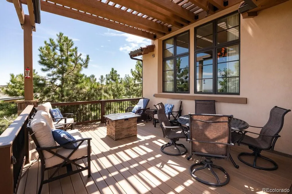 Start each day with breathtaking views and space for every car. Welcome to your private oasis in the prestigious Ravenna community! This exquisite 4-bedroom, 6-bathroom residence boasts a rare 7-car garage equipped with a lift, perfectly suited for the discerning car enthusiast. Nestled on a spacious corner lot, the home offers stunning views of the award-winning golf course and serene Chatfield Reservoir. Bask in natural light throughout the sunlit family room featuring a cozy fireplace, beautiful hardwood floors, and an adjacent game room with a pool table—perfect for entertaining family and friends. Entertain effortlessly in the elegant formal dining area with French doors leading to a charming front patio. The newly renovated gourmet kitchen is a chef’s dream, complete with Wolf appliances, quartzite countertops, and rich hardwood cabinetry. The luxurious primary suite provides a spa-inspired bath and a generous walk-in closet. The fully finished basement is an entertainer’s paradise with a wine cellar, exercise room, media room with tiered seating, and two additional en-suite bedrooms. Enjoy the relaxing sauna or step outside to take advantage of the private hot tub surrounded by breathtaking views—an ideal retreat for unwinding after a long day. Enjoy premier community amenities including a state-of-the-art gym, clubhouse with an exceptional restaurant and patio dining, and a sparkling pool. Situated near hiking trails and water recreation at Chatfield Reservoir, this home perfectly blends luxury, comfort, and Colorado’s breathtaking lifestyle. Don’t miss this rare opportunity to call Ravenna home!