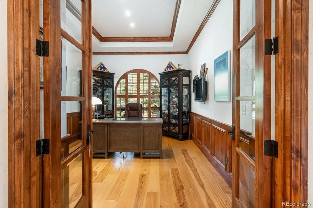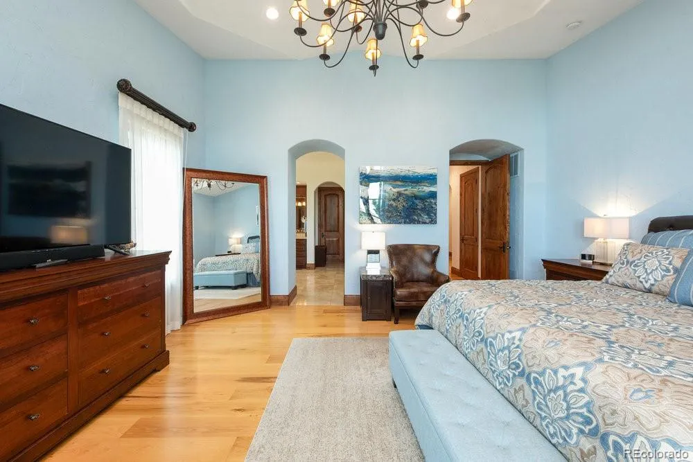 Experience winter serenity in this exquisite custom home, perfectly set against breathtaking mountain views. Surrounded by snow-dusted evergreens and elegant stone architecture, it captures the magic of Colorado living in every season. This 4-bed, 6-bath Ravenna home blends luxury and comfort, with sun-filled family and game rooms, a remodeled gourmet kitchen with Wolf appliances, quartzite counters, and custom cabinetry. The primary suite offers a spa-like bath and oversized closet. Lower level features wine cellar, media and fitness rooms, plus two en-suite bedrooms. Step outside to a private hot tub and sauna. Rare 7-car garage with lift. Certified roof. Clubhouse, pool, trails, golf, and Chatfield Reservoir nearby. CHECK OUT THE ONE ONE OF A KIND VIRTUAL TOUR.