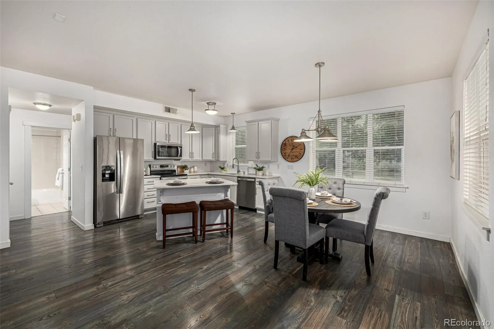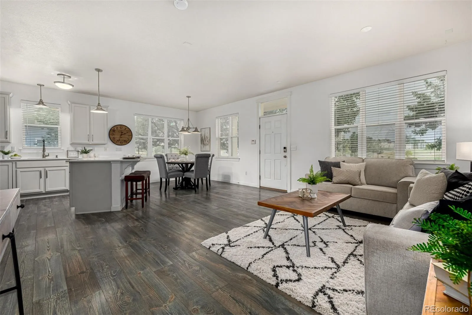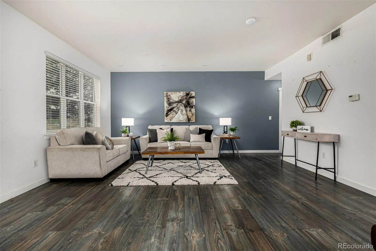 This ground-floor 2 bed, 2 bath condo in Denver’s coveted Central Park neighborhood offers 1,059 square feet of thoughtfully designed, low-maintenance living. The wide-open floor plan is perfect for everyday ease or effortless entertaining, with luxury vinyl plank flooring and south-facing windows flooding the space with natural light.