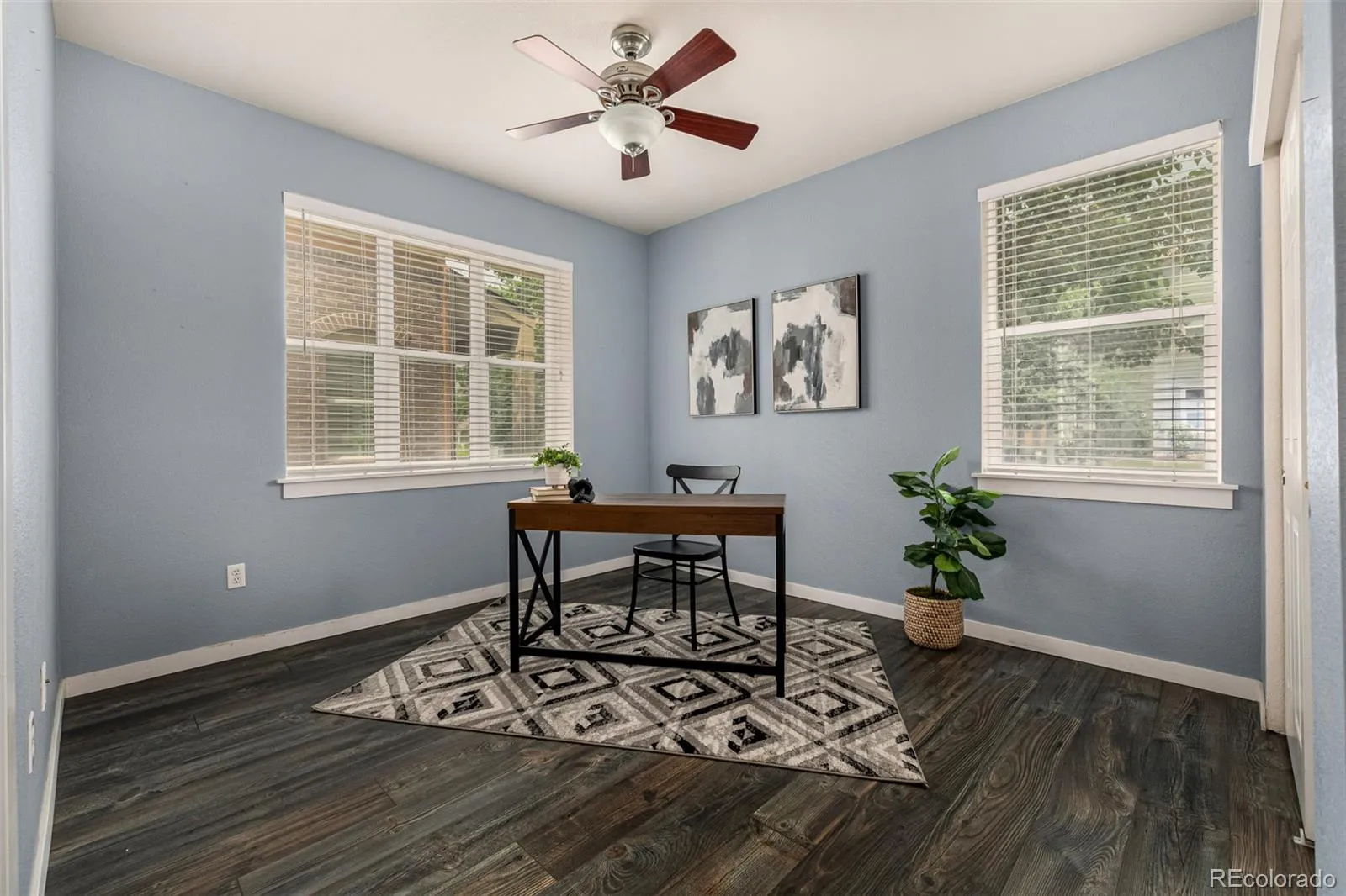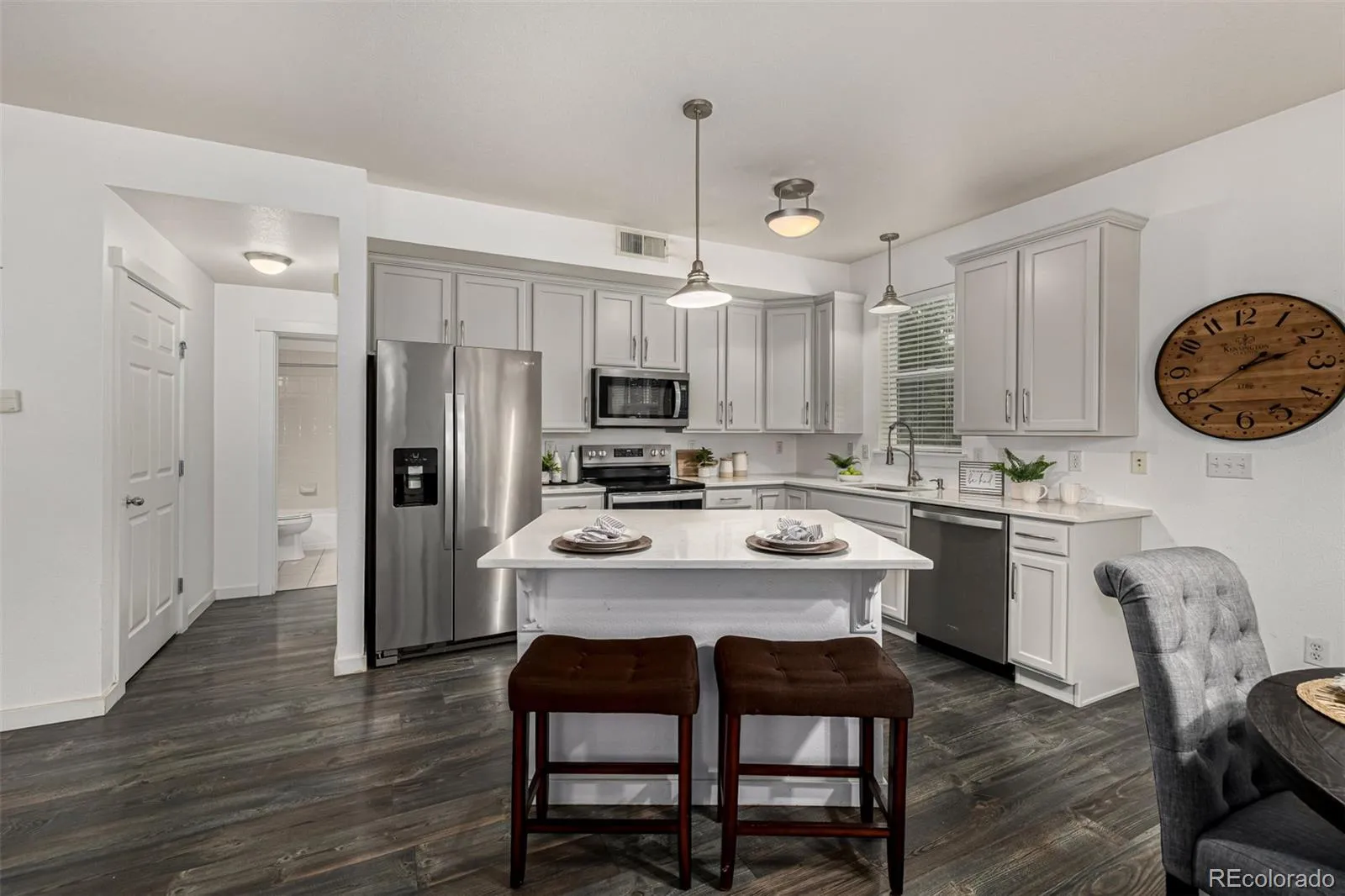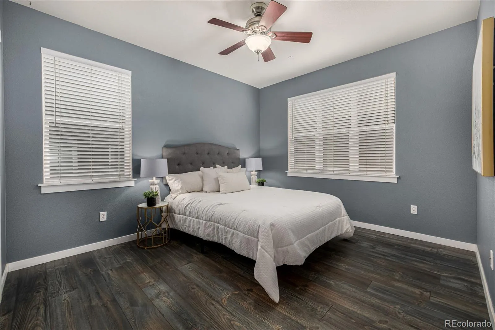 This ground-floor 2 bed, 2 bath condo in Denver’s coveted Central Park neighborhood offers 1,059 square feet of thoughtfully designed, low-maintenance living. The wide-open floor plan is perfect for everyday ease or effortless entertaining, with luxury vinyl plank flooring and south-facing windows flooding the space with natural light.