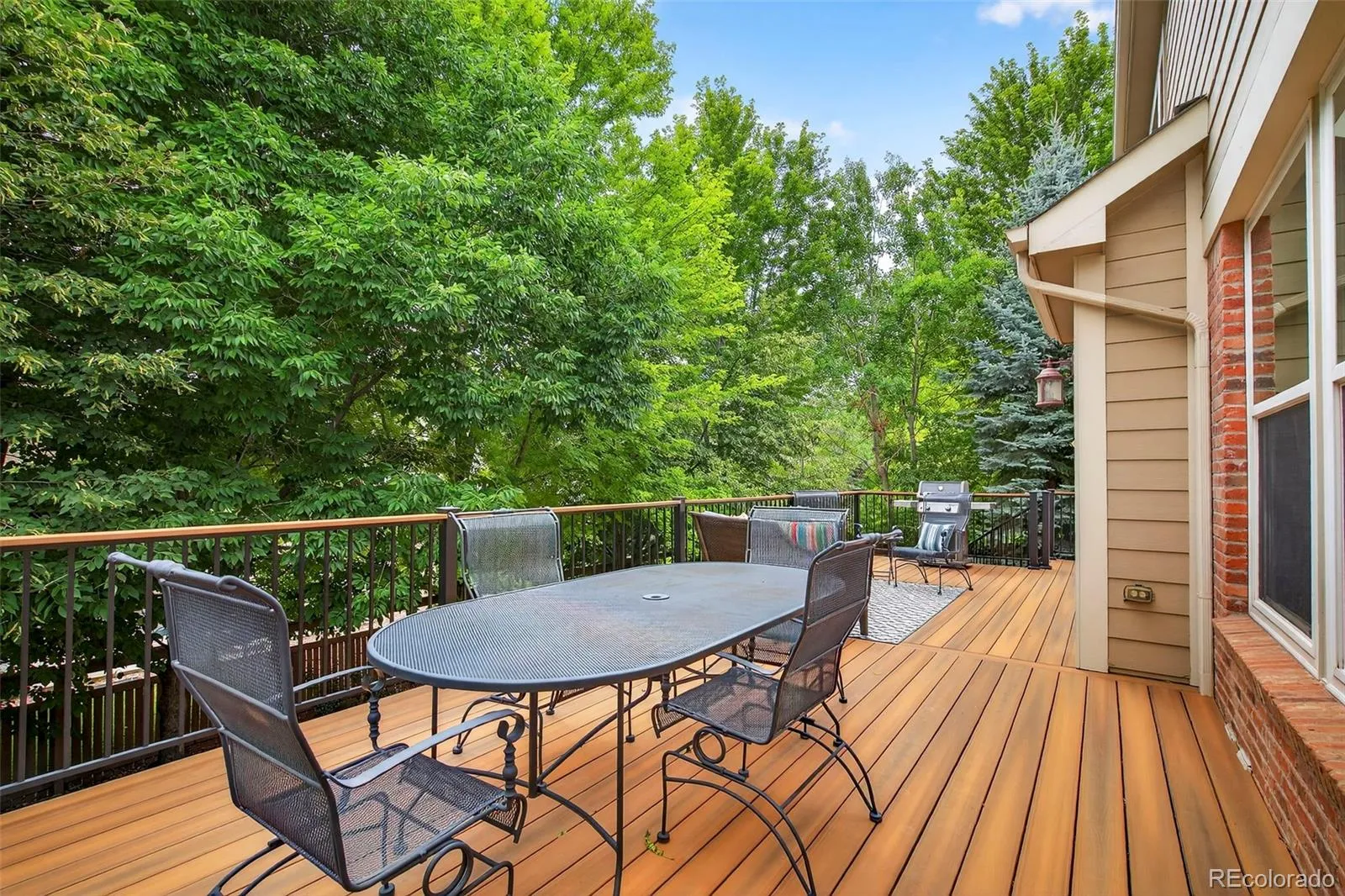 Gorgeous 5 Bedroom Aspen Creek Home in the Heart of Broomfield! This beautifully maintained home welcomes you with gleaming wood floors and a light-filled foyer that sets the tone for the rest of the property. The main-level office offers high ceilings and a peaceful view of the tree-lined street, perfect for working from home. The spacious layout features a large eat-in kitchen that opens into a cozy family room with a fireplace, along with a formal dining room and reading area ideal for entertaining. A separate mudroom and oversized laundry room provide extra storage and can be closed off for privacy. Upstairs, you’ll find four generously sized bedrooms. The primary suite features a luxurious five-piece bath and a large walk-in closet. Two secondary bedrooms are connected by a Jack-and-Jill bathroom, while the fourth bedroom has its own private ensuite. The lower level extends the living space with a spacious media lounge with fireplace, game area, wet bar, and a fifth bedroom, & 3/4 bathroom, ideal for hosting or multigenerational living. As well as a large dedicated storage room adds convenience. The backyard is a private sanctuary, complete with a new $30,000 deck, lush landscaping, and a peaceful water feature—perfect for dining, relaxing, or entertaining.