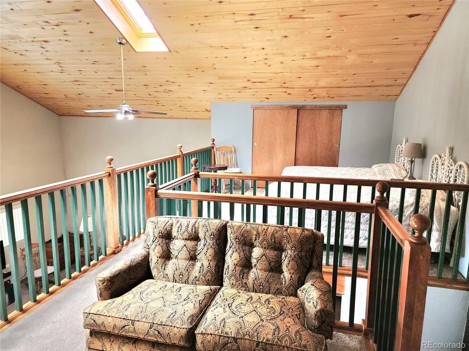 Your private 35-acre mountain sanctuary in Bear Trap Ranch. Discover serenity and breathtaking natural beauty on this stunning 35-acre property in the exclusive Bear Trap Ranch community. With gorgeous views of Mt. Pisgah and striking red rock outcroppings, this peaceful mountain retreat offers a true sense of escape, yet near the blacktop for all conveniences. Enjoy your morning coffee or evening drink on the large, inviting front deck, overlooking the beautiful, park-like grounds and mature trees that provide ultimate privacy. The home itself features a lovely, open-concept floor plan highlighted by unforgettable tongue-and-groove ceilings. Two main-level bedrooms are situated on opposite ends of the living space, each with its own updated, attached baths with bidets and walkout access to the expansive front deck—offering private access to the stunning views. A versatile loft space provides a third bedroom or bonus living area, overlooking the main floor with a cozy sitting area and two closets.