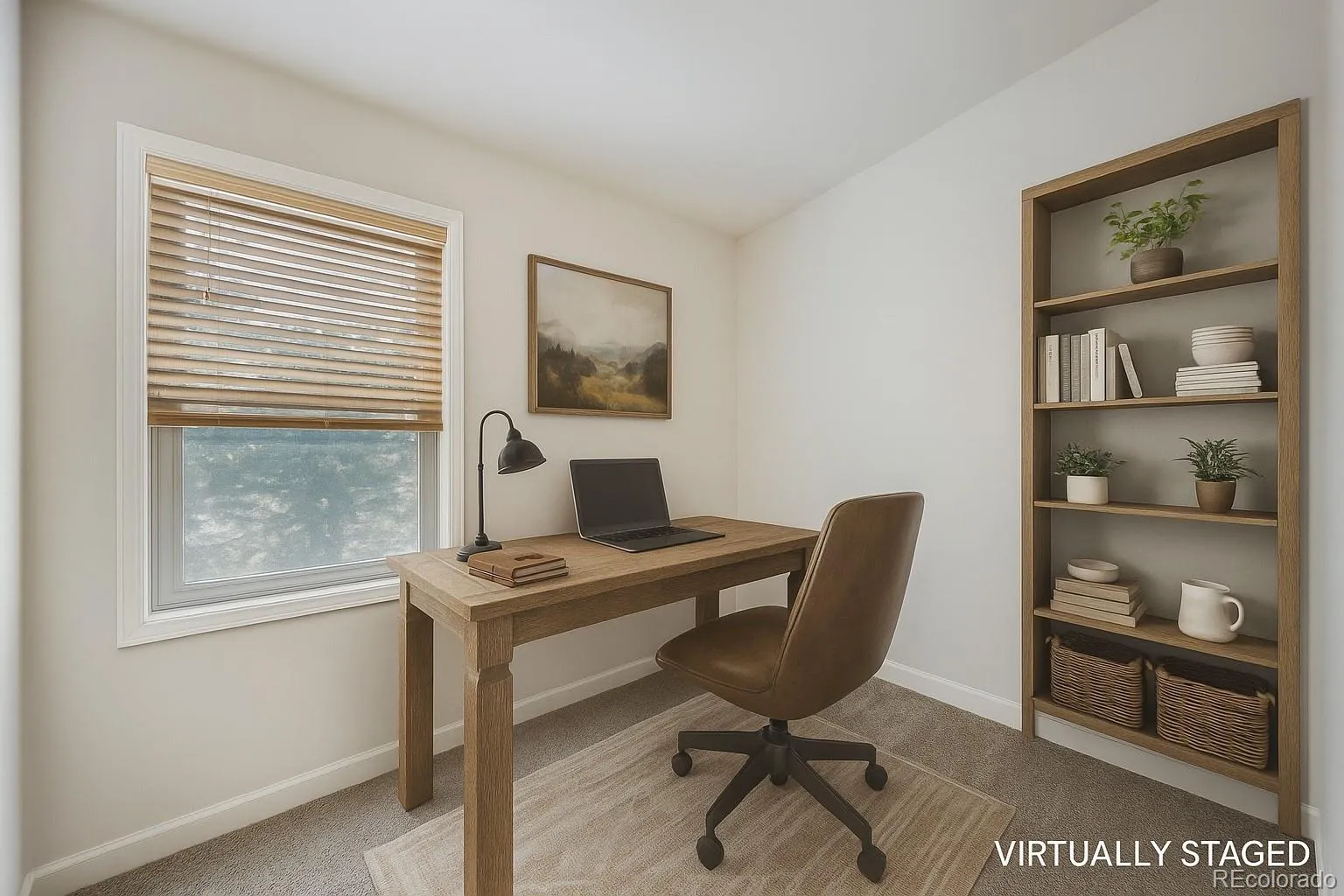 The primary suite offers a peaceful retreat with neutral tones, soft carpeting, and space to unwind after a day of mountain adventure. The additional rooms, including a home office, provide flexibility for guests, hobbies, or remote work.