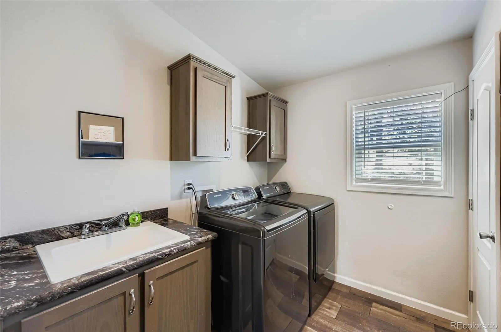The kitchen features stunning granite-style countertops, pendant lighting, and abundant cabinetry, perfect for anyone who enjoys cooking or entertaining. Natural wood tones and a large center island provide a balance of style and practicality.