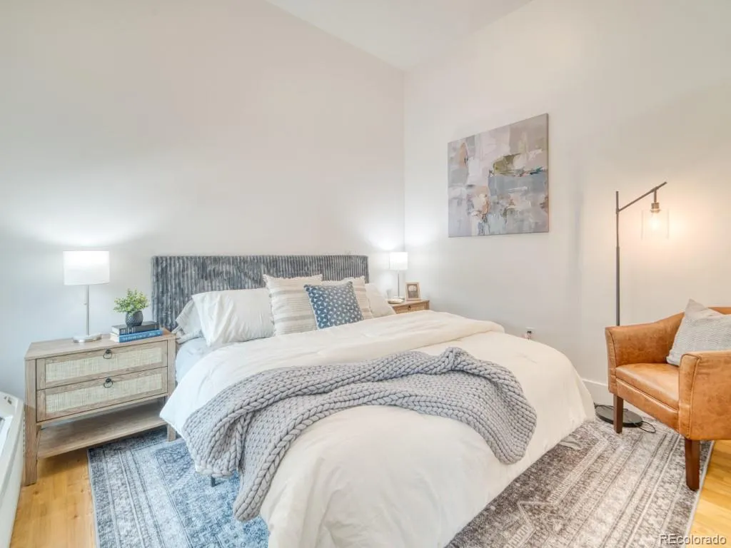 A unique opportunity exists to acquire one of the most desired locations to live in, the coveted Cherry Creek North District. The Residences at 135 Adams combine modern design with purposeful simplicity. This unique offering, Suite 409, is one of only two layouts of this style, showcasing both function and privacy within a soft-loft design with exceptional volume, thanks to expansive ceiling heights and south-facing windows that provide an abundance of natural light year-round. The space offers both aesthetic appeal and practicality, which suits the needs of urban dwellers who want a perfect sanctuary above Cherry Creek North’s lively district.