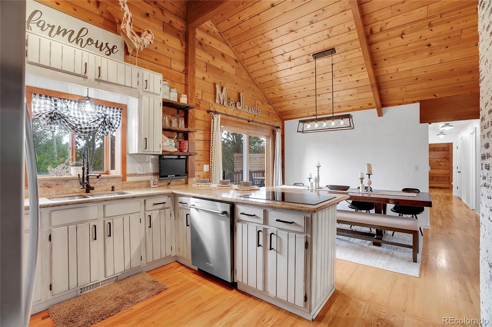 Back on the market! Buyer terminated before inspection, no fault of the home or seller. Welcome to M&J Ranch! An immaculately maintained 5.5-acre horse-ready property in the heart of Colorado country living. This private, treed oasis features mature ponderosa pines, a seasonal pond, and no HOA. The beautifully updated 4 bed, 3 bath home offers approx. 3,000 sq ft of living space including a fully finished walkout basement with private mother-in-law quarters, complete with its own kitchen, living area, bath, and laundry hookups, perfect for multigenerational living or possibly a short-term rental. The main level features an open layout with hardwood floors, granite countertops, custom cabinetry, a cozy fireplace, and a spacious primary suite with dual vanities and a custom tile shower. Step outside to an oversized two-tier deck or relax in the front-yard gazebo surrounded by seasonal blooms and wildlife. The basement is fully finished with 2 bedrooms & full bathroom, living area, electric fireplace, and even a hidden room behind a Murphy door! The home is heated and cooled by a Geothermal Premier Earth-Friendly Efficiency Water Furnace system, recently serviced and certified. Additional upgrades include TWO brand new 50 gal. water heaters, a new well pump, newer roof, and much more! Equestrian-ready with a 3,185 sq ft 14-stall barn, hay loft, tack and vet rooms, auto waterers, hay conveyor, round pen, grain bin, and diesel tank. Fully fenced and cross-fenced with ample RV and trailer parking. Located minutes from Kiowa and Elizabeth, and within 45 minutes of Parker, Castle Rock, and DIA—this move-in-ready ranch is a rare Colorado gem! Situated just minutes from the town of Kiowa, with easy access to nearby equestrian events, feed stores, and veterinary services. This area is well known for its 4-H community, horse-friendly zoning, and expansive agricultural land use. All information is deemed reliable. Buyers and buyer’s agent to verify all information on their own.