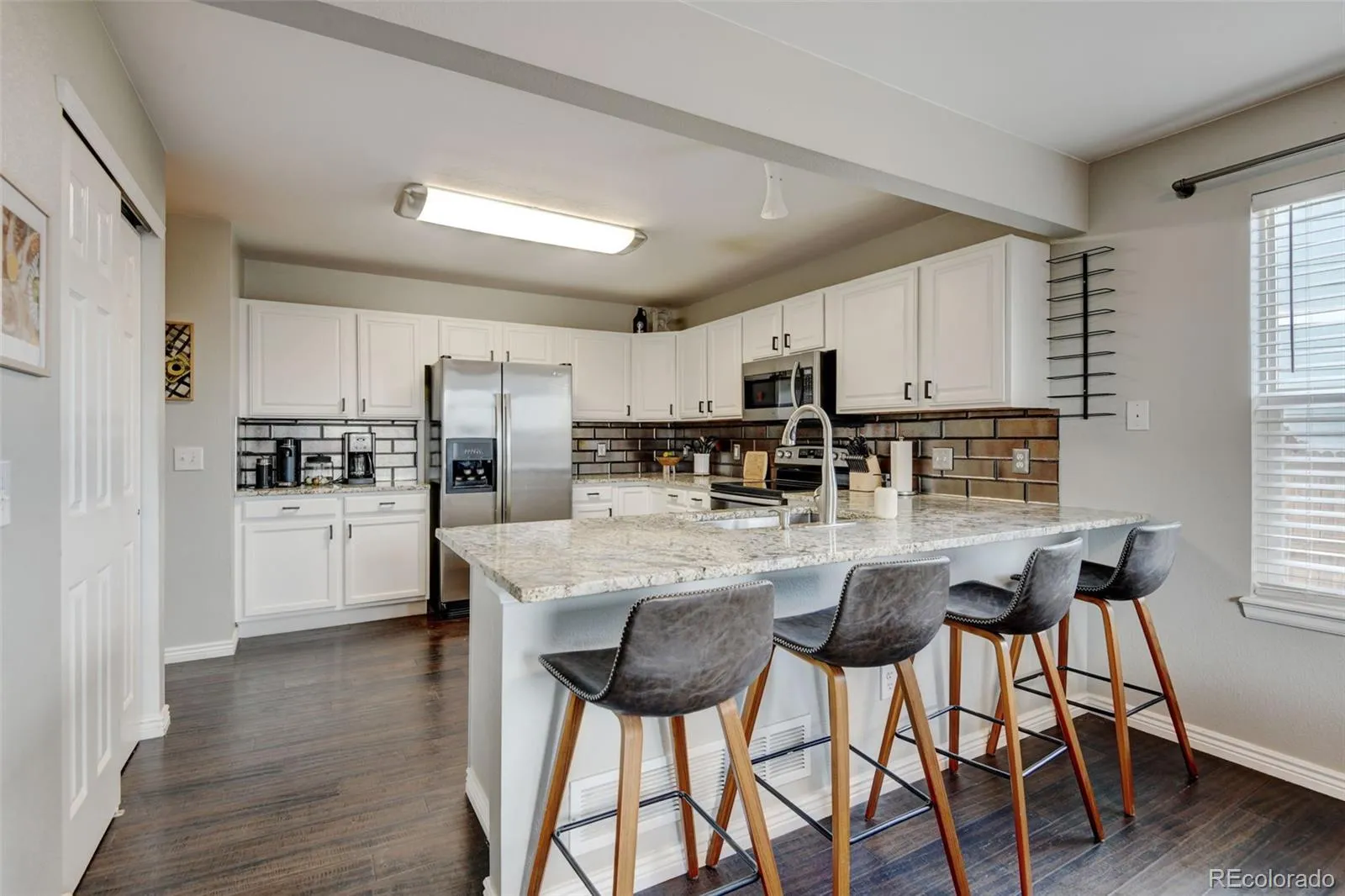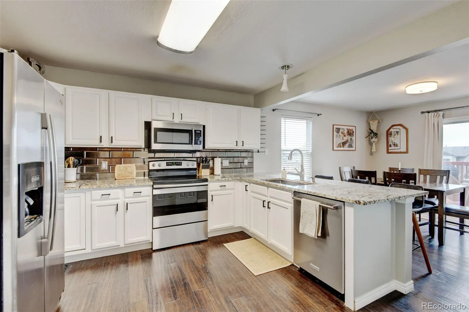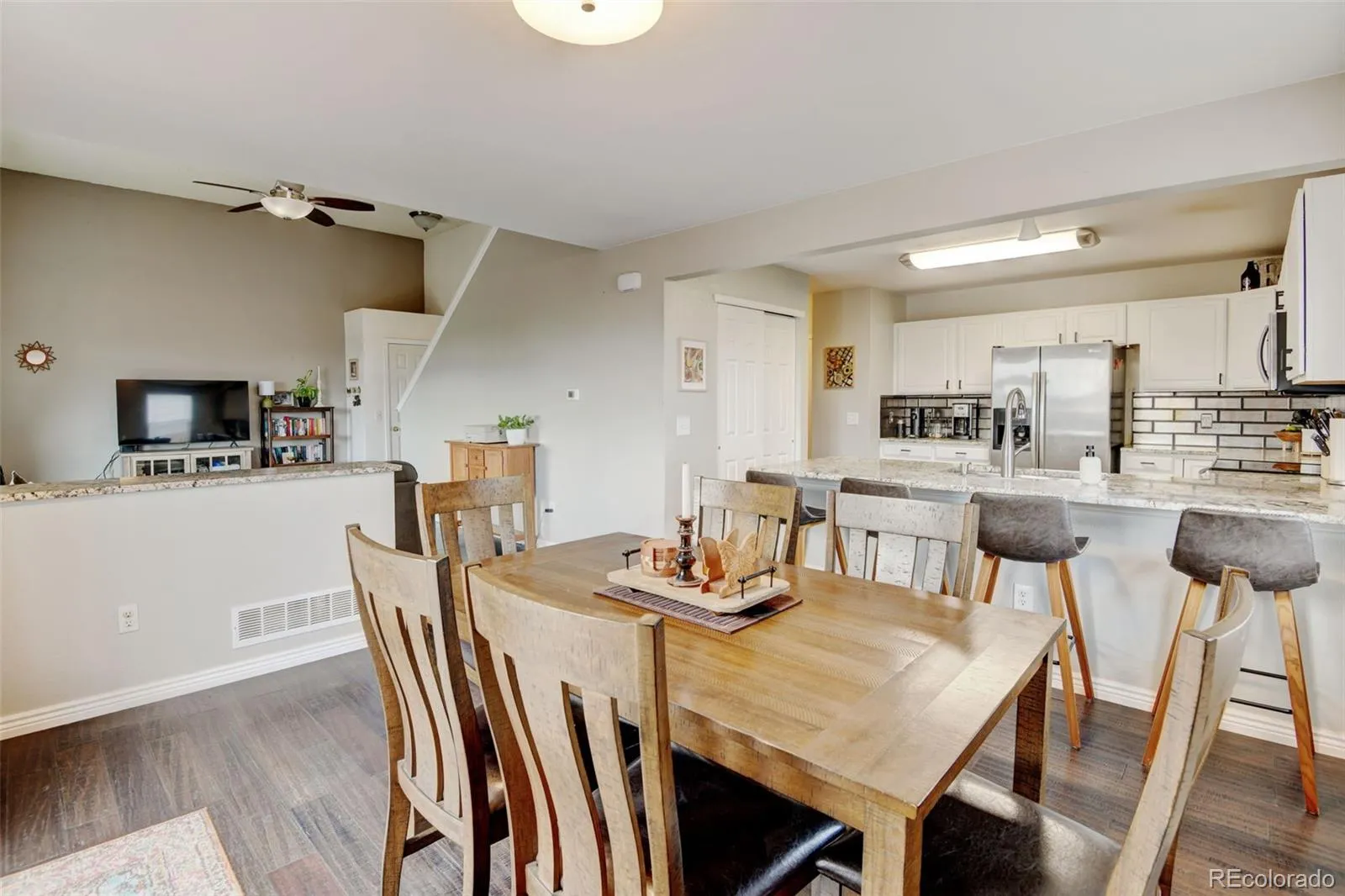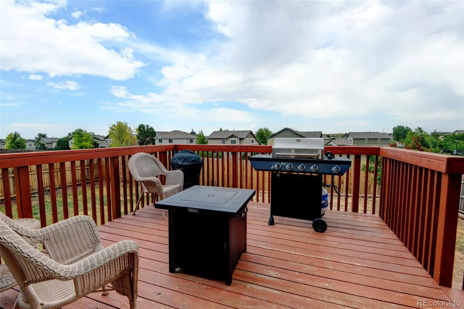 Welcome to this beautifully updated two-story home, perfectly positioned in a quiet and well-kept cul-de-sac. Designed for both comfort and practicality, this residence offers 2 bedrooms, 3 bathrooms, and a bright, open layout that invites you in from the moment you arrive. The main and upper levels are finished with rich engineered bamboo flooring, adding warmth and style throughout the living spaces. The kitchen is a standout with stainless steel appliances, and a convenient breakfast bar—perfect for casual dining or entertaining. Upstairs, the private primary suite offers a spacious walk-in closet and a full en suite bath complete with granite countertops. A second generously sized bedroom and an additional full bath, while the main-floor powder room adds everyday convenience. The basement is finished, just needs carpet and baseboards. Step outside to the peaceful back deck, where you can enjoy morning sunrises. The backyard backs to a greenbelt with no direct rear neighbors, offering added privacy and a serene setting. Unbeatable location completes the package. Residents enjoy nearby parks, scenic trails, and bike paths, all just minutes from Southlands Mall, restaurants, E-470, and Buckley Space Force Base. This home is the ideal blend of tranquility and accessibility—come see for yourself!