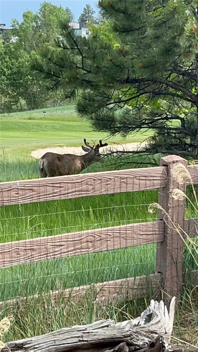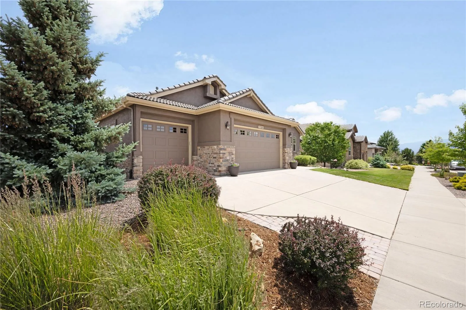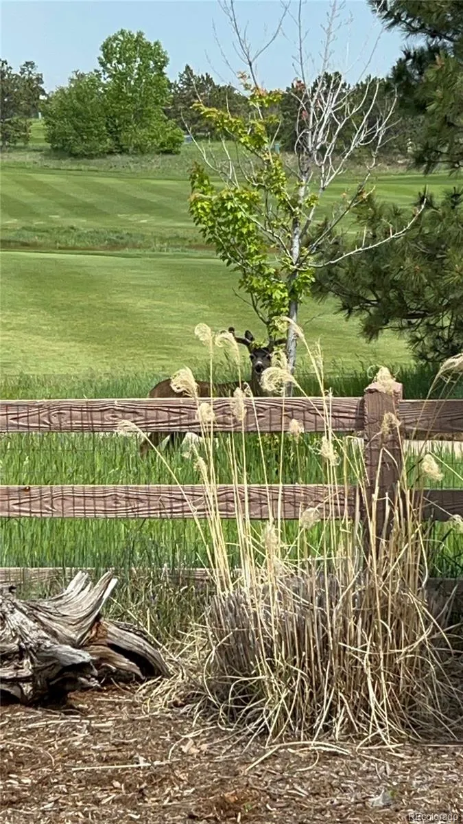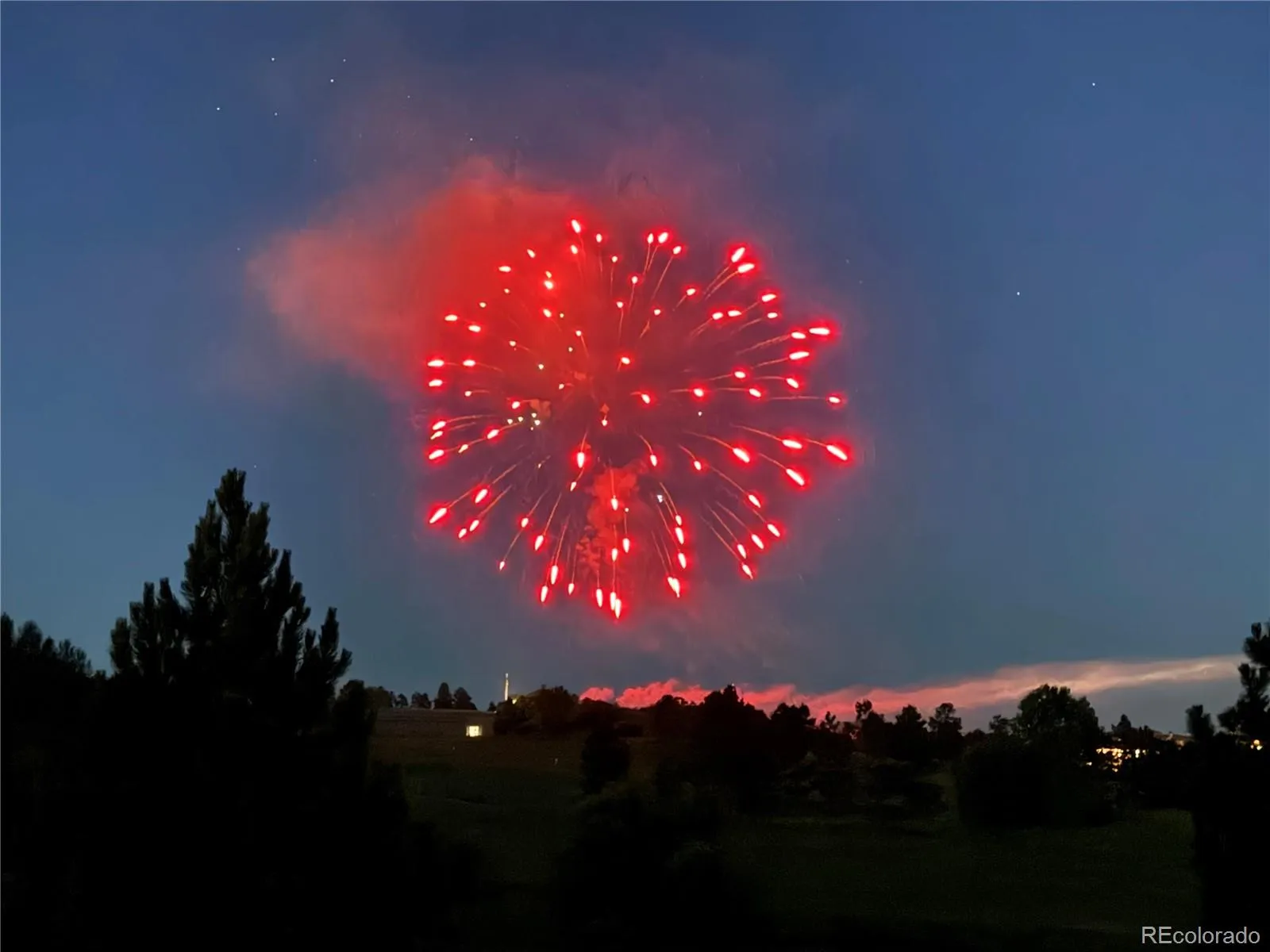 This stunning home offers four bedrooms and three bathrooms with ranch style main level living. The open floor plan leads to a spacious living area with a interior/exterior fireplace and window views to the back yard and the golf course. The kitchen is set perfectly for entertaining small or big crowds with a large island and matching stainless steel appliances and access from the dining area to the large deck with stairs to oversee the backyard and 12th fairway of the golf course. The primary bedroom with golf course views and 5 piece suite with jacuzzi tub are comfortably on the main level with a second bedrooms or office and full bath. Walking down the wide stairs leading to the basement with 9ft ceilings and large family room with wet bar and wine cooler offer a spacious area to entertain, with a walk out to the backyard and several outdoor living areas to relax or entertain. This home is west facing which is great for snow melt and sunsets in the backyard with the deer and the firework display from the club house make this a great home to entertain family and friends. This home was painted in June of 2025. The garage was customized with the builder by the owner to include an additional 2ft of length. The neighborhood offers top tier community amenities, and access to award winning D-20 schools, fine dining, shopping and with the The Club at Flying Horse in view from your backyard this home offers the perfect blend of golf oasis and location. Don’t miss this rare and exceptional opportunity, schedule your showing today!