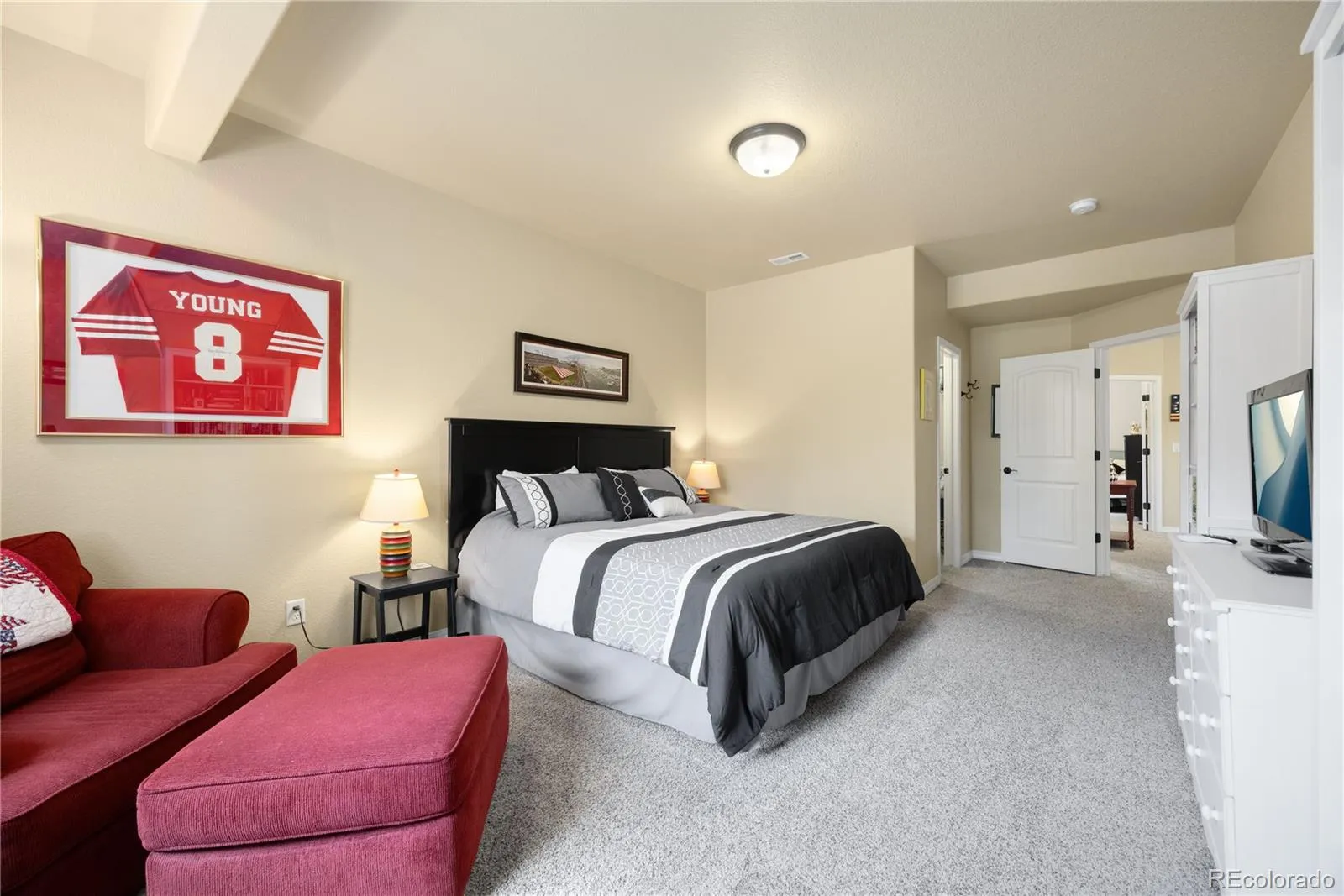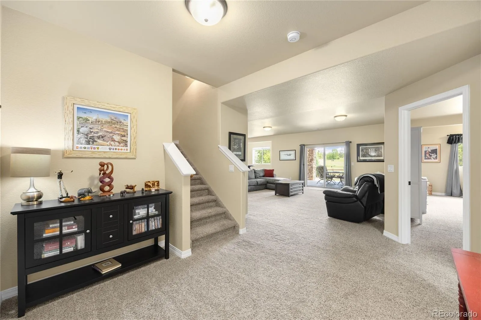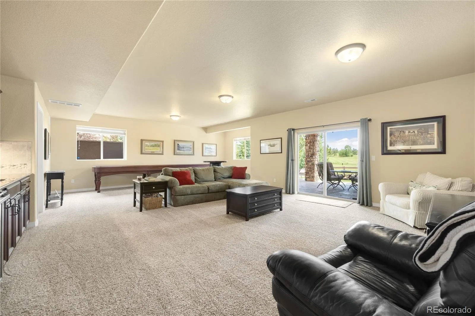 This stunning home offers four bedrooms and three bathrooms with ranch style main level living. The open floor plan leads to a spacious living area with a interior/exterior fireplace and window views to the back yard and the golf course. The kitchen is set perfectly for entertaining small or big crowds with a large island and matching stainless steel appliances and access from the dining area to the large deck with stairs to oversee the backyard and 12th fairway of the golf course. The primary bedroom with golf course views and 5 piece suite with jacuzzi tub are comfortably on the main level with a second bedrooms or office and full bath. Walking down the wide stairs leading to the basement with 9ft ceilings and large family room with wet bar and wine cooler offer a spacious area to entertain, with a walk out to the backyard and several outdoor living areas to relax or entertain. This home is west facing which is great for snow melt and sunsets in the backyard with the deer and the firework display from the club house make this a great home to entertain family and friends. This home was painted in June of 2025. The garage was customized with the builder by the owner to include an additional 2ft of length. The neighborhood offers top tier community amenities, and access to award winning D-20 schools, fine dining, shopping and with the The Club at Flying Horse in view from your backyard this home offers the perfect blend of golf oasis and location. Don’t miss this rare and exceptional opportunity, schedule your showing today!