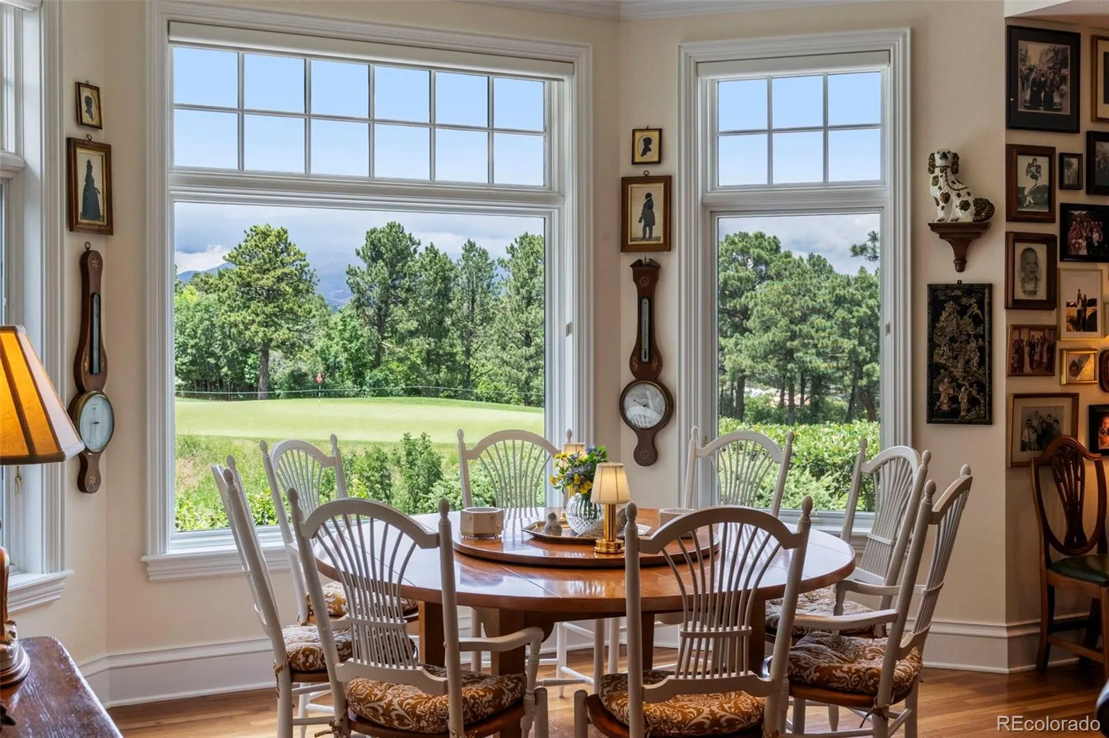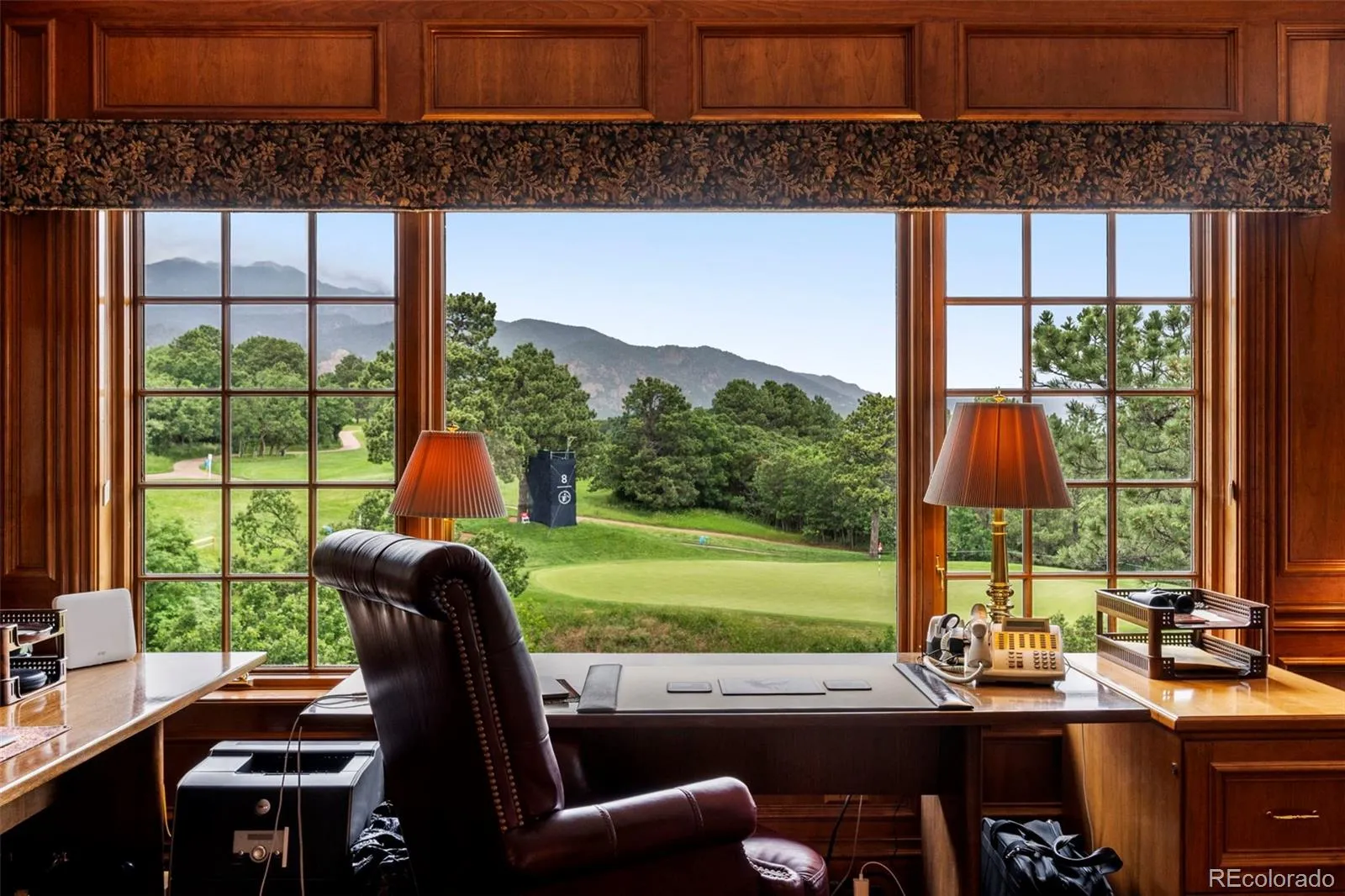 Welcome to one of Colorado Springs’ most distinguished properties. It is an exquisite English Manor home nestled along the iconic fairway and putting green of the Broadmoor Hotel’s East Golf Course. This stately residence seamlessly blends Old World craftsmanship with modern luxury. This legacy property pairs with timeless architecture and the prestige of Broadmoor Living. Framed by mature trees and gardens, the home’s classic stone façade and pitched slate roof evoke the timeless charm of the English countryside. Inside, discover luxurious living spaces with rich cherry hardwood floors, custom millwork, and stone fireplaces that create an atmosphere of warmth and refinement. The grand formal living room and dining rooms are ideal for entertaining, and the sun-drenched sitting room offers a cozy retreat with stunning views of the golf course, mountains, and city. A gourmet chef’s kitchen features top-tier appliances, a walk-in pantry, and custom cabinetry that flows into a relaxed hearth room and informal living space. The main level primary suite is a private sanctuary, complete with a spa-like bath. The upper level features an office and sitting room enveloped in the deep, inviting hues of natural cherry wood, where the floors and walls create a luxurious environment with views of the mountain, city, and the 8th hole putting green. Additionally, the property features a game room and a private retreat with a bedroom, living room, and kitchen, all accessible via a private entrance. The lower-level features additional en-suite bedrooms, a game room, and a walk-out family room, providing comfort and privacy for family and guests. This rare offer includes a four-car heated garage. Outdoors, enjoy tranquil mornings on the terrace, evenings under the stars, and the opportunity to join the Broadmoor Golf Club for unparalleled access to world-class golf and resort amenities. A once-in-a-generation opportunity to own a piece of Broadmoor history.