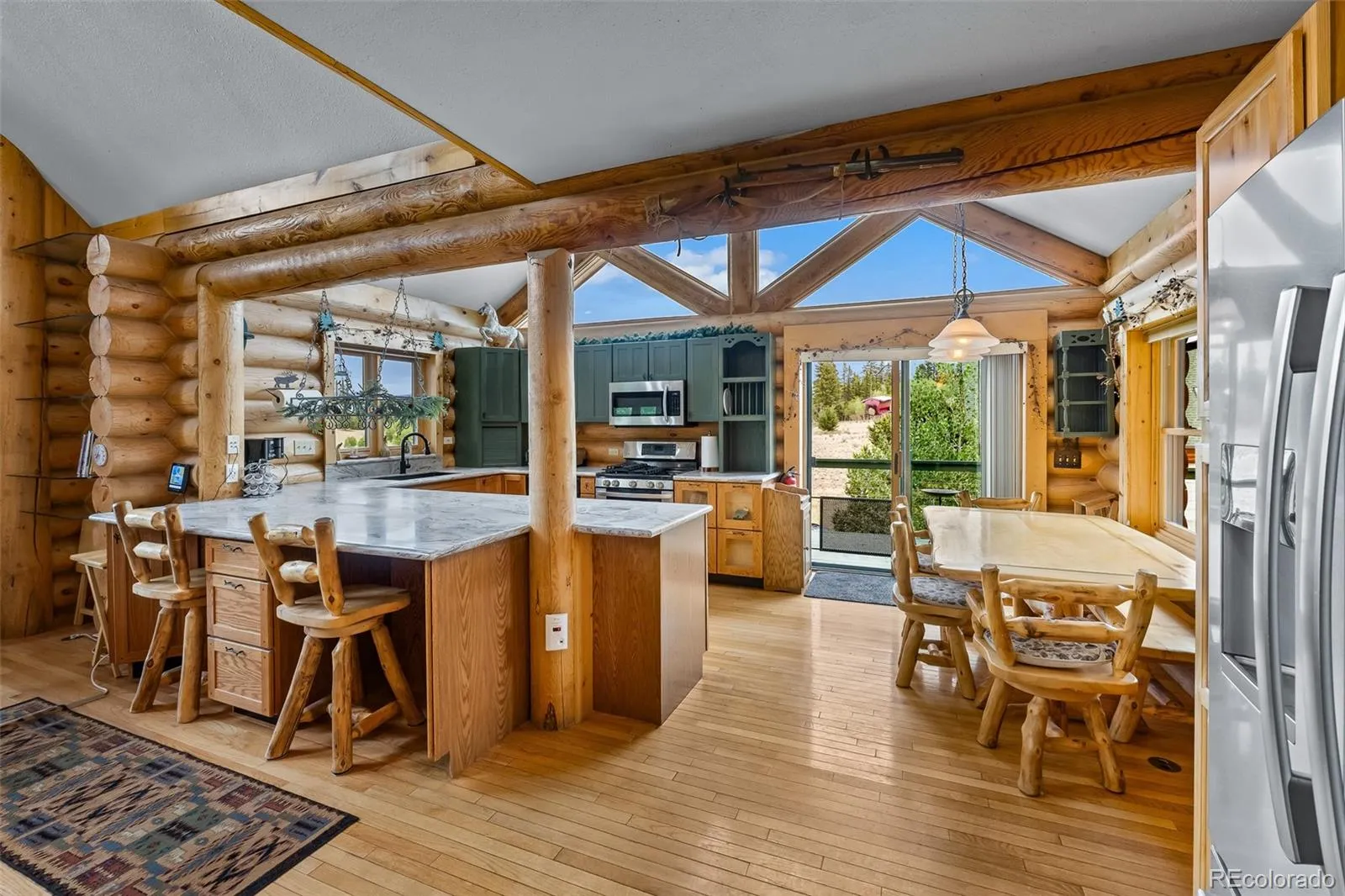 Nestled within the pristine wilderness setting of Como, Colorado, this extraordinary custom log home presents an unparalleled sanctuary of luxury and natural splendor. This meticulously crafted 4-bedroom, 3-bathroom residence spans 2,434 square feet of thoughtfully designed living space, harmoniously blending rustic elegance with modern sophistication. The heart of this remarkable home features a large modern kitchen, perfect for culinary enthusiasts, while the main level primary suite offers convenience and comfort. There are ample storage solutions throughout the property, ensuring seamless organization and functionality. Step outside to discover the crown jewel: a stunning wrap-around deck complemented by a dramatic 3rd level observation deck, providing breathtaking panoramic views of the surrounding landscape. The treed lot ensures privacy while maintaining easy year-round access. Practical amenities include a 1-car attached garage and an impressive heated and insulated 2,080-square-foot detached heated 2-car garage featuring workshop space, and partially finished living quarters, offering endless possibilities for recreation or additional accommodation. This exceptional property delivers the perfect balance of seclusion and accessibility, while remaining conveniently located near recreational amenities. The combination of quality construction, generous outdoor spaces, create an incomparable living experience for those seeking refuge from the ordinary. This represents not merely a home, but a lifestyle destination where luxury meets the great outdoors. The voluntary HOA provides exceptional amenities including hiking trails, frisbee golf, playground facilities, snowshoeing access, BBQ pavilion, comfort station with showers, basketball courts, and RV dump station. This property represents a rare opportunity to own a quality-built custom log home that seamlessly combines mountain luxury with practical functionality.
