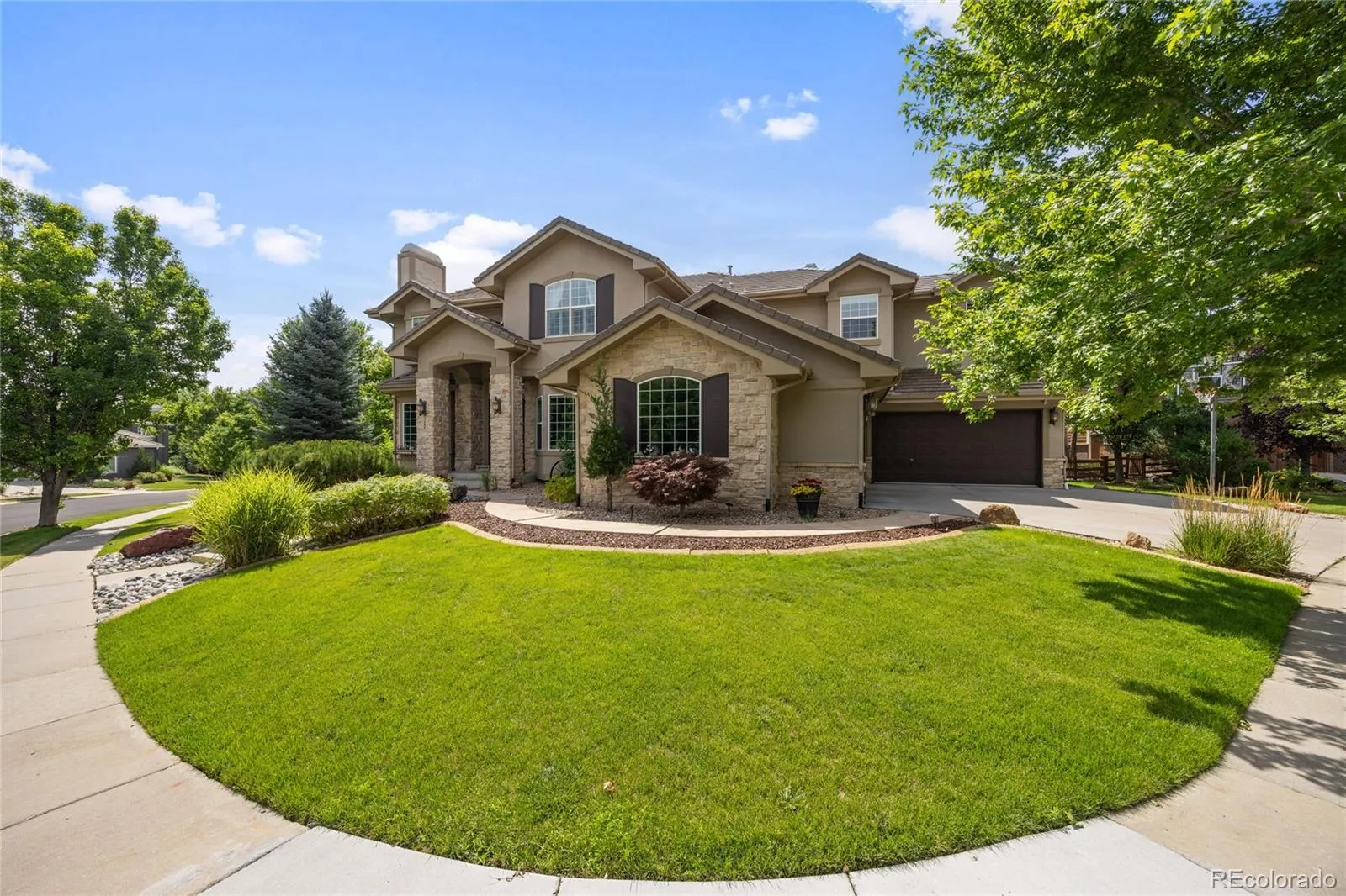 New Price Adjustment! Welcome to this Colorado Dream Home in Highly-Sought After Aspen Creek. This thoughtfully designed semi-custom home where classic elegance meets everyday comfort. From the moment you enter, the vaulted two-story foyer with a gracefully curved staircase and wood flooring sets the tone for the refined style throughout. You’ll appreciate the hand-troweled walls, transom windows, and mature landscaping offering maximum shade and enjoyment. The main level is centered around a two-story family room anchored by a cozy fireplace. The large gourmet kitchen is a chef’s delight, featuring slab granite countertops, designer cabinetry, a five-burner gas cooktop, double ovens, stainless steel appliances, under-cabinet lighting, and a walk-in pantry. A charming dining nook with tile inlaid floors lead to French doors open to beautifully landscaped and fully fenced yard with multiple sitting areas. The pergola-covered patio is ideal for outdoor entertaining. A generous private study with French doors, formal living room and dining room, a guest bath, a spacious laundry room with cabinetry and an oversized closet, and access to the oversized 4 car garage with a hot/cold hose bib and EV charger —complete this floor. Upstairs, the elegant primary suite features a coffered ceiling, a grand sitting area, and a spa-like bath with dual closets. All five bedrooms have an en-suite bath and walk-in closet, offering ultimate privacy for family/guests. The professionally finished lower level showcases the same high-end finishes as the rest of the home with another beautiful curved staircase. Here you’ll discover a large family room with fireplace and built-ins, a game room, a gorgeous custom wet bar with wine cooler and dishwasher, a bonus room/study with French doors, and a guest suite with a luxurious steam shower and walk-in closet. New HVAC just installed. Fabulous location with pool, trails, parks, shopping, dining, Denver, Boulder, DIA, Aspen Creek K-8 school.