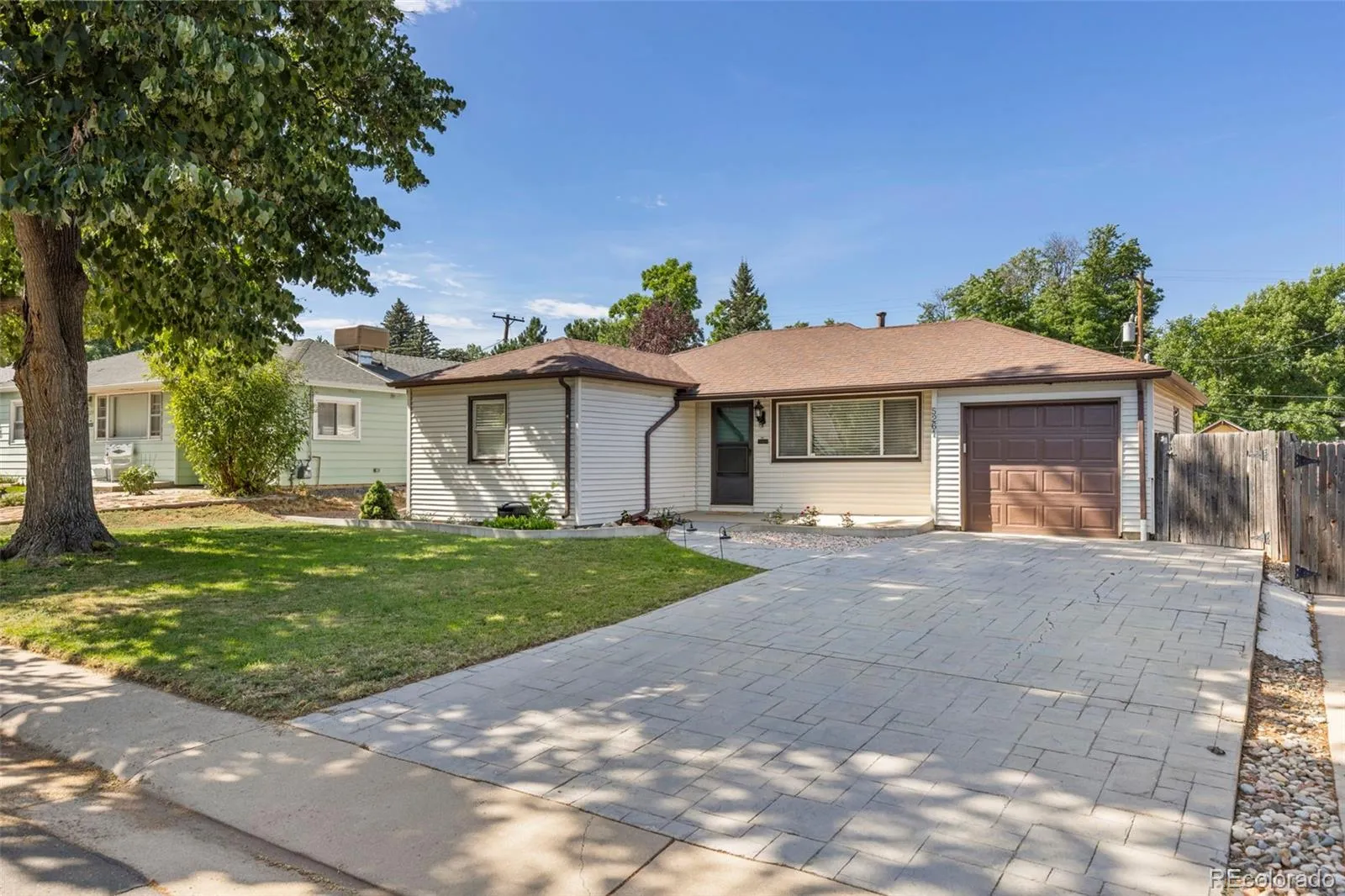 Welcome to this beautifully updated 3-bedroom, ranch-style home in the heart of Littleton’s sought-after Brookridge Heights neighborhood. Tucked away on a tranquil, tree-lined street, this home blends timeless character with modern updates—perfect for Colorado living. Step onto the spacious stamped concrete driveway and into a warm, welcoming interior featuring gleaming hardwood floors, fresh paint, and a thoughtful open floorplan. The open living area flows effortlessly into the updated kitchen, complete with granite countertops, upgraded cabinetry, tile flooring, and an eat-in kitchen—ideal for both casual meals and entertaining. Enjoy year-round comfort with CENTRAL AIR CONDITIONING and a newer furnace. The three generously sized bedrooms include a large primary suite with ample double closet space and two additional bedrooms, all conveniently located near a well-maintained full bath. Step outside to your own private backyard oasis: a fully fenced, large lot perfect for outdoor entertaining, gardening, or simply relaxing in the Colorado sunshine. The expansive patio is great for BBQs, and the storage shed provides extra space for tools and toys. The ATTACHED GARAGE offers additional storage and parking convenience. Located in close proximity to the scenic Highline Canal Trail and minutes from bus routes, Light Rail, I-25, DTC, and downtown Littleton, this home offers unbeatable access to trails, parks, dining, and top-rated Littleton Public Schools. Don’t miss this rare opportunity to own a well-cared-for home with space to grow in one of Littleton’s most desirable neighborhoods.