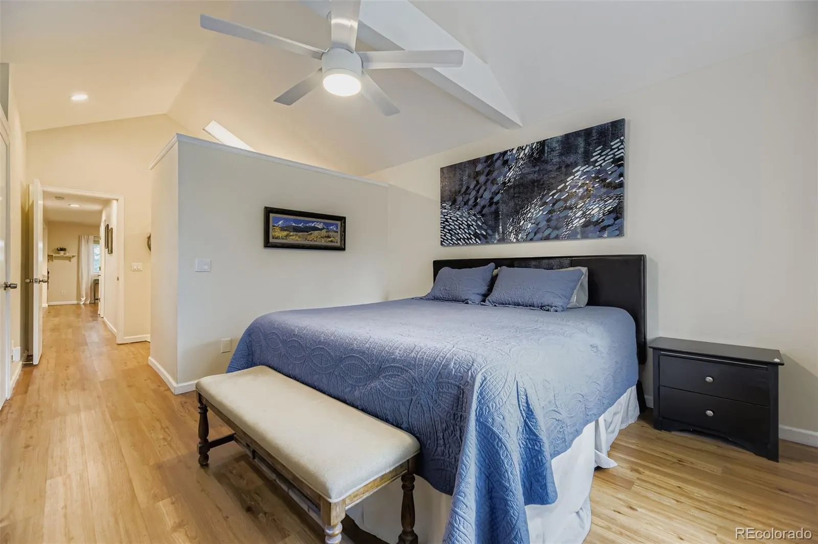 A warm and inviting floor plan welcomes you from the foyer to a spacious living area brimming with natural light from skylights and western-facing windows. A beautiful brick fireplace, vaulted ceilings, an adjoining dining room that opens to a great private deck with incredible mountain and sunset views, and large kitchen round out the wonderfully functional main floor—perfect for experiencing the amazing beauty of the mountains and trees–and living the indoor/outdoor Colorado lifestyle!