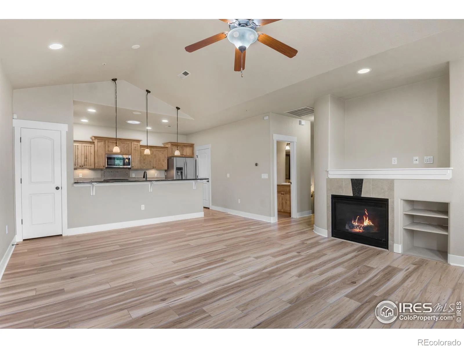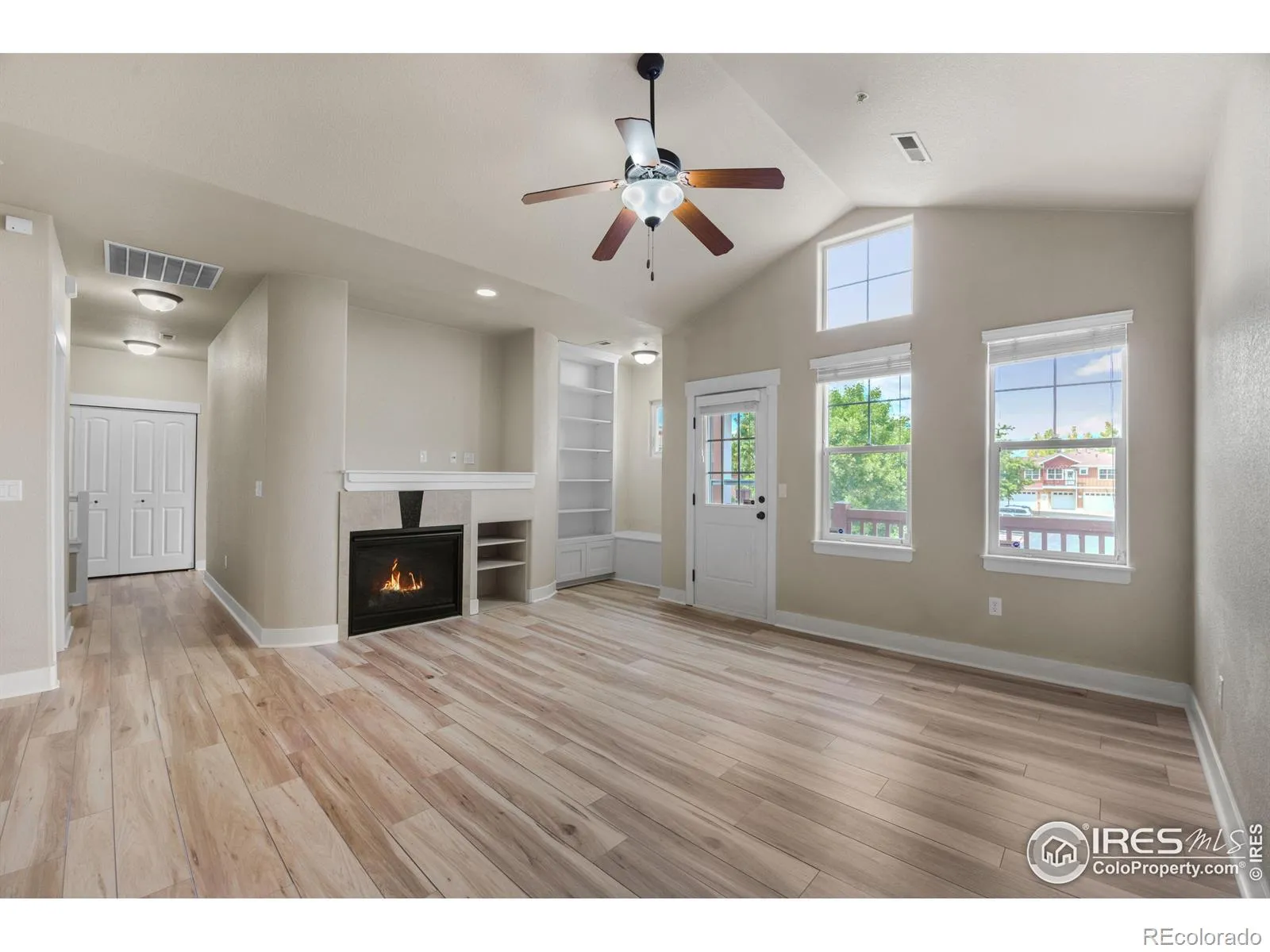 Looking for easy living in one of Fort Collins’ most desirable neighborhoods? This updated 2-bedroom, 2-bath home checks all the boxes-low maintenance, stylish finishes, and a location that puts everything within reach. Step inside to a bright, open floorplan with soaring ceilings and brand-new laminate flooring throughout. The kitchen is a true standout: granite countertops, sleek cabinetry, stainless steel appliances, and a spacious pantry make it a dream for cooking or casual entertaining. It flows right into the living area, where natural light pours in and a cozy gas fireplace adds just the right touch of comfort. The primary suite feels like a retreat, featuring vaulted ceilings, multiple windows, a ceiling fan, and a luxurious 5-piece bath with soaking tub, glass-enclosed shower, and a walk-in closet with built-ins. The second bedroom is generously sized, and the nearby 3/4 bath is perfect for guests or family. Other perks? A new HVAC system for peace of mind, a private balcony for morning coffee or evening wind-downs, and a one-car attached garage for added convenience. Laundry is tucked away on the main level-no hauling baskets up and down stairs. Located just minutes from Twin Silos Park, top-rated schools, shopping, dining, and with quick access to I-25, this home offers the best of Fort Collins without the hassle. No metro tax. Optional pool access available with membership. Bonus: Get a 1% credit when you use our Preferred Lender. This might just be the best deal in town-come see for yourself.
